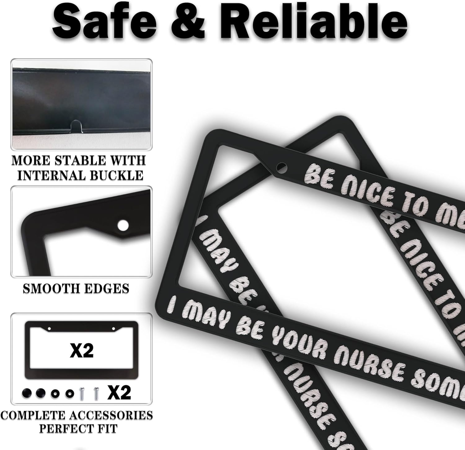 License Plate Frames Black and White License Plate Frame Be Nice to Me I May Be Your Nurse Someday Universal Aluminum Car Accessory 2 Pack with Screw Covers Set