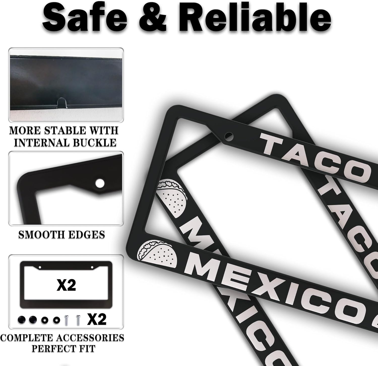 License Plate Frames Multicolor Automotive Exterior Accessories Taco Mexico Universal Aluminum Car Accessory 2 Pack with Screw Covers Set