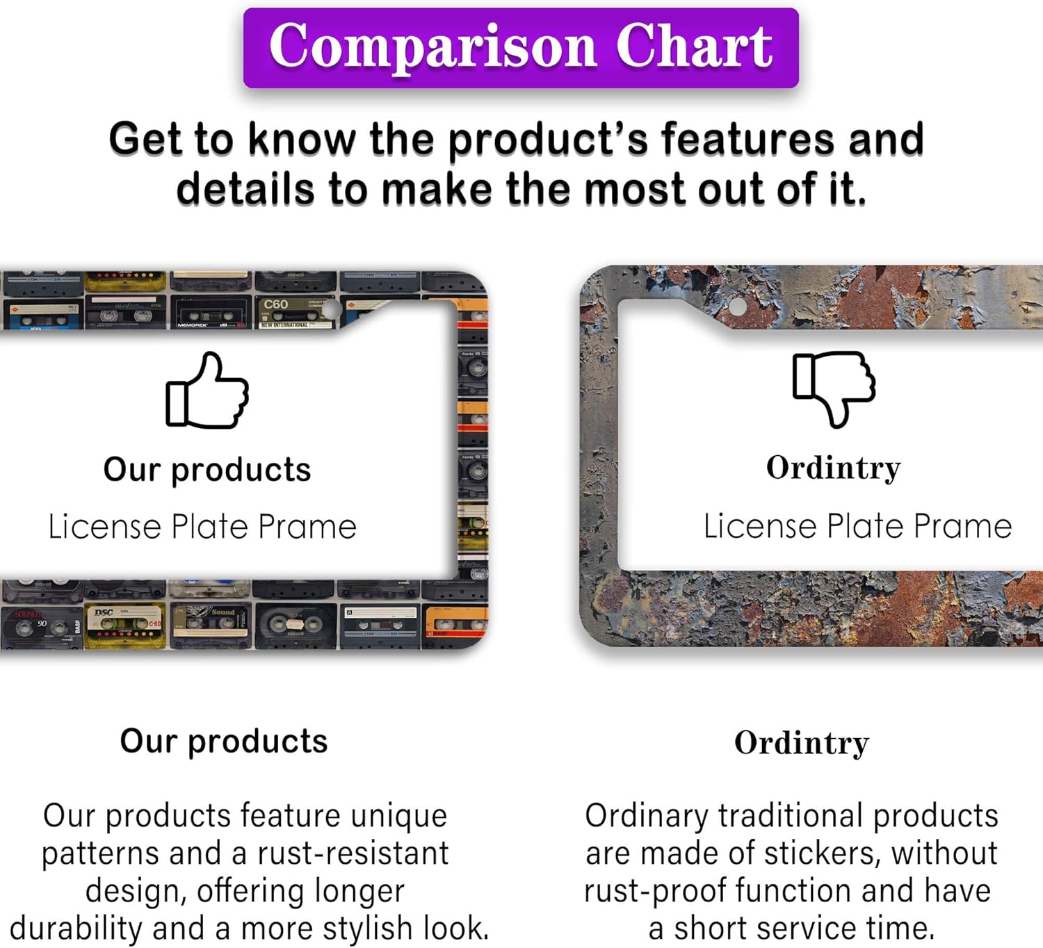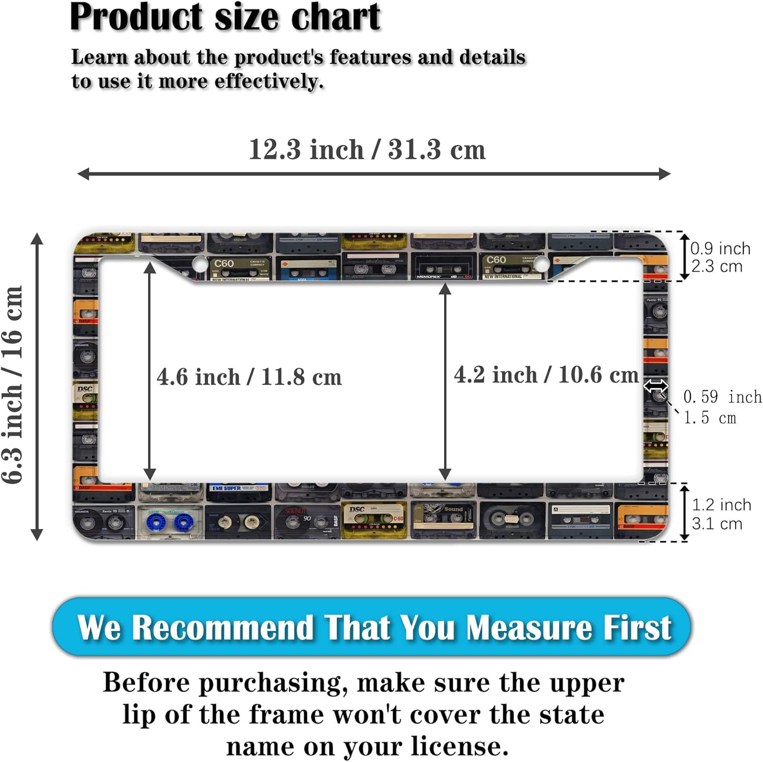 License Plate Protector Multicolor License Plate Frames Vintage Cassette Music Tape Aluminum Metal Car Accessory 2 Pack with Screw Covers Set