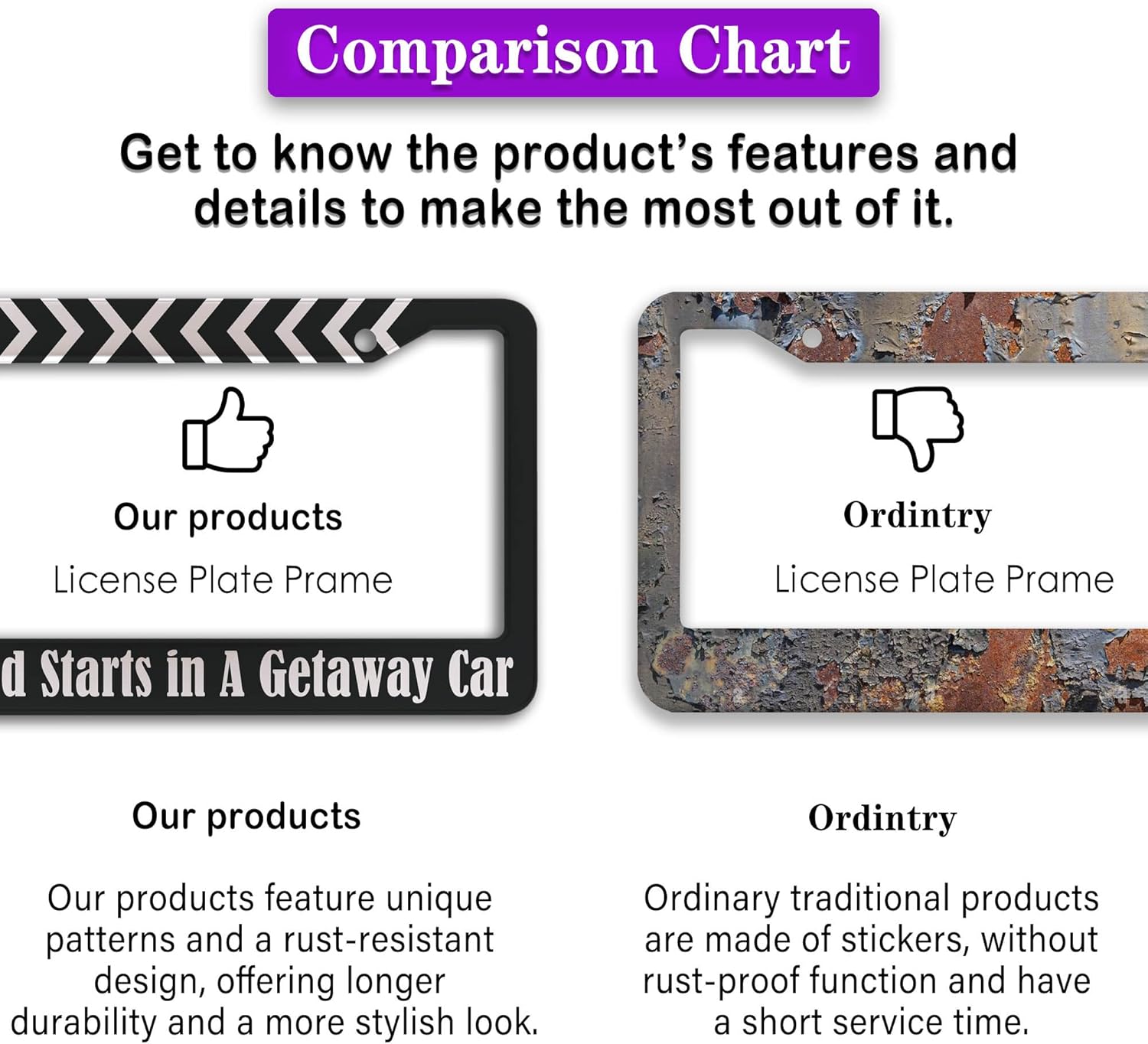 - FUNNY DESIGN: Featuring a unique and customized design, this license plate frame creates an eye-catching and bold statement for your vehicle. Not only does it add a touch of personality to your car, but it also makes for a great holiday gift, souvenir, or decorative piece for family, friends, and colleagues. Elevate your vehicle's style while sharing a laugh!