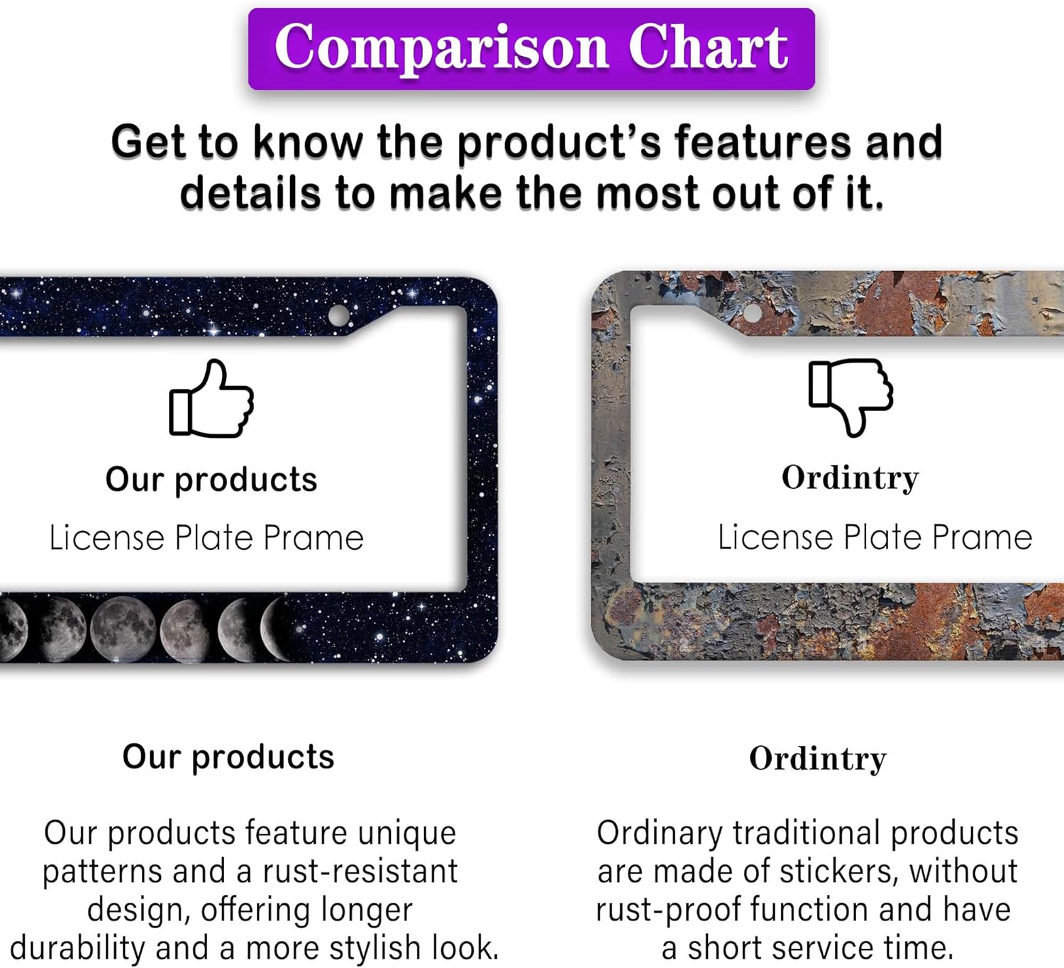 - ALUMINUM FRAME: This License Plate Frame is crafted from high-quality aluminum that is resistant to corrosion, rust, and harsh weather conditions. Its rugged reliability design ensures a long lifespan, making it capable of withstanding car washes and extreme weather, providing you with a reliable and stylish solution for your vehicle.