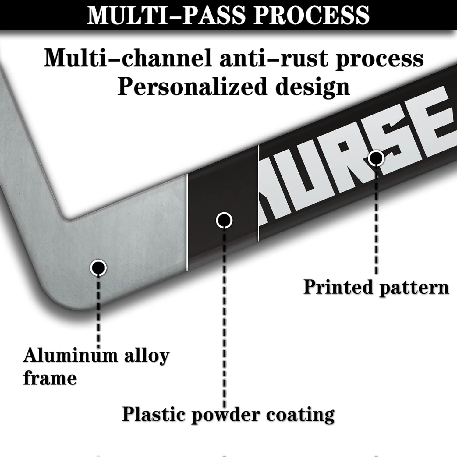 License Plate Protector Black and White License Plate Frames Nurse Life Universal Aluminum Car Accessory 2 Pack with Screw Covers Set