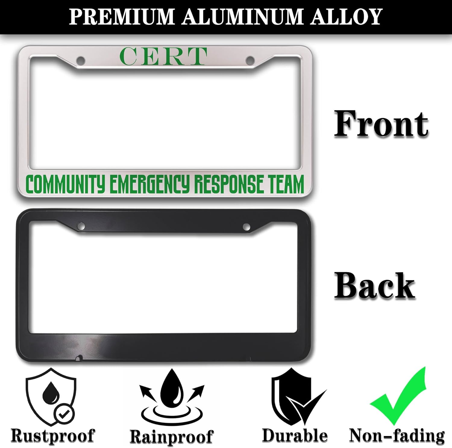 License Plate Frames Black Green Automotive Exterior Accessories Cert Community Emergency Response Team Aluminum Metal Car Accessory 2 Pack with Screw Covers Set