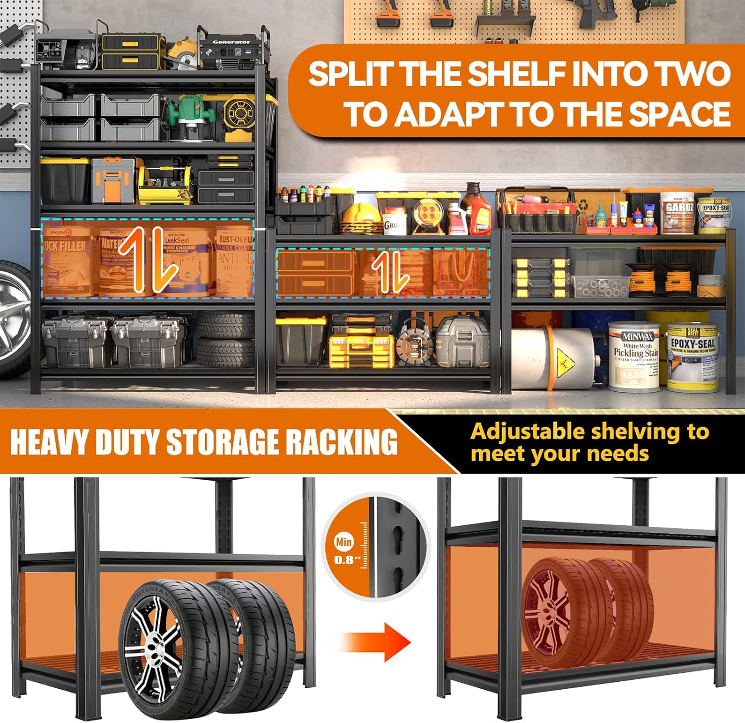 - ăExtremely Sturdy & Durable Garage ShelvingăConstructed from high-strength premium cold-rolled steel with advanced powder-coated technology, this metal shelving unit resists rust, oxidation, and wear. The industrial-grade coating not only enhances aesthetics but also boosts durability, making it a heavy-duty shelving solution for long-term use