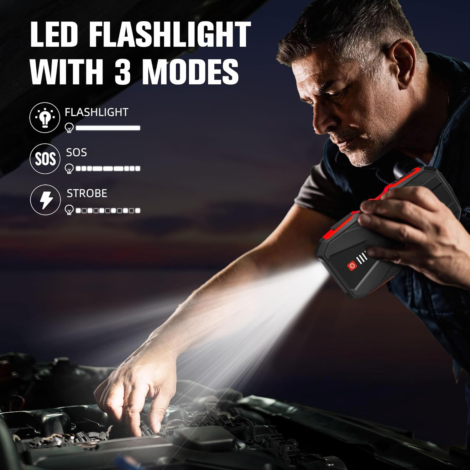 ASPERX 3000A Jump Starter for Car Battery, 12V Portable Jump Box with LED Light & Smart Jumper Cables, BMS for Up to 10.0L Gas or 8.0L Diesel Engines-Red
