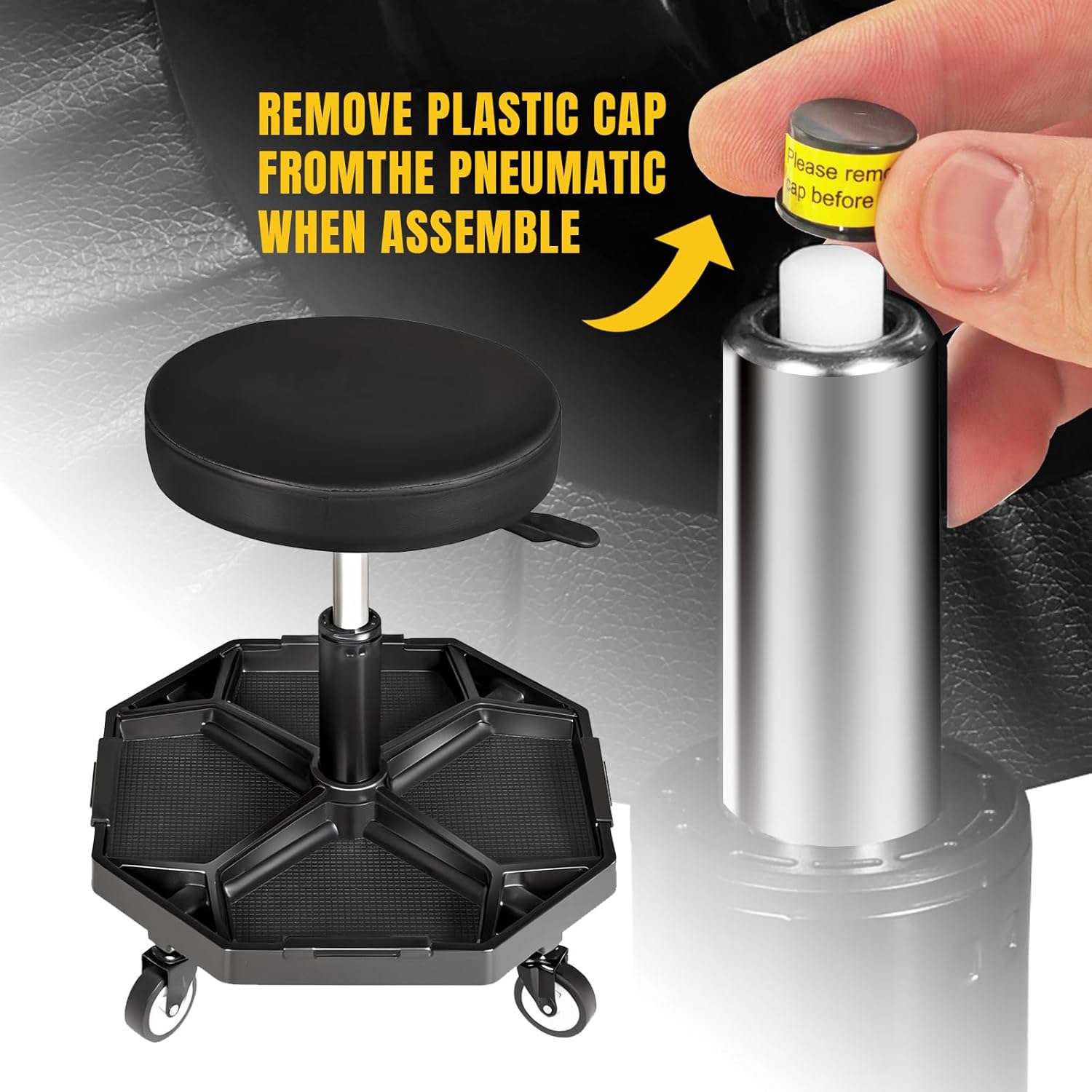 - Adjustable Height Pneumatic Design : Rolling pneumatic creeper stool allows you to find most suitable height that make work more comfortable. Height Range: 16"-22". Perfect height is ideal for your daliy Car repair,shop,Garage,warehouse or DIY workshop. If you have any questions,please contact me without hesitate