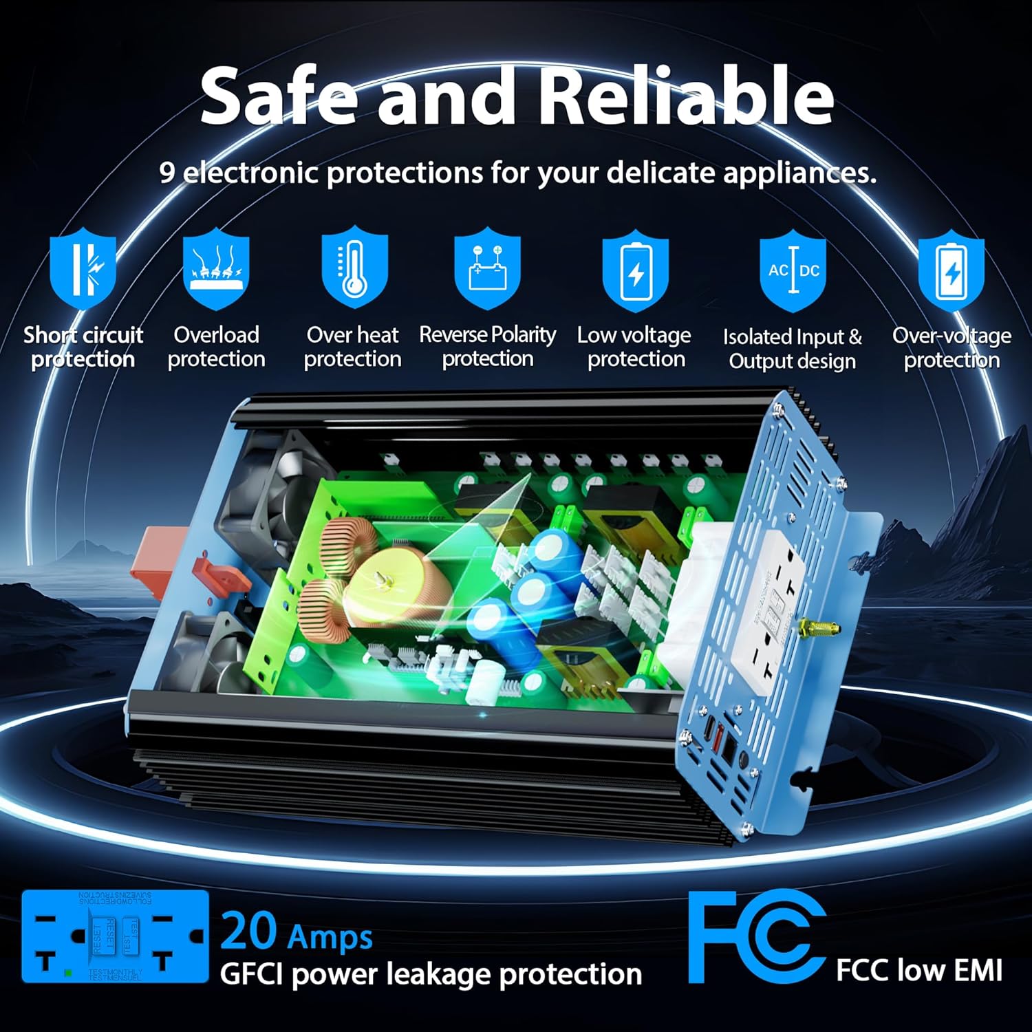 - 【Widely Uses to protect appliances】It is longer than other 1500 Watt inverters for FCC approval,its advanced pure sine wave technology provides quality AC equivalent to grid power which will protect and extend the life of your electronics and appliances, such as 1000Watt microwave, freezer,Laptop,tablet,Audio etc. With its quiet and high inductive loads, the solar inverter operates with no buzzing sounds when your electronics are turned on and allow them to run smoother, cooler, and quieter