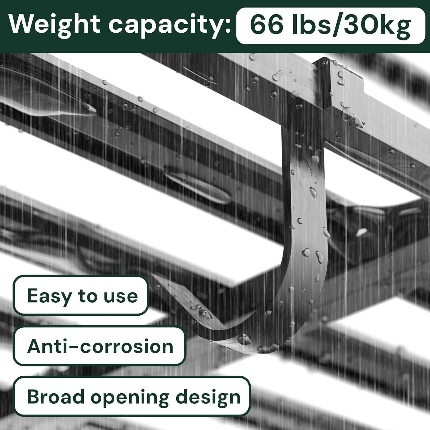 - Multipurpose Usage for Expanded Storage: Beyond bicycles, these robust hooks are ideal for a variety of hanging needs, including ladders, gardening tools, hoses, sports equipment, and more. They are perfect for freeing up floor space in your garage, while their sturdy design accommodates a weight capacity of over 66 pounds when installed correctly
