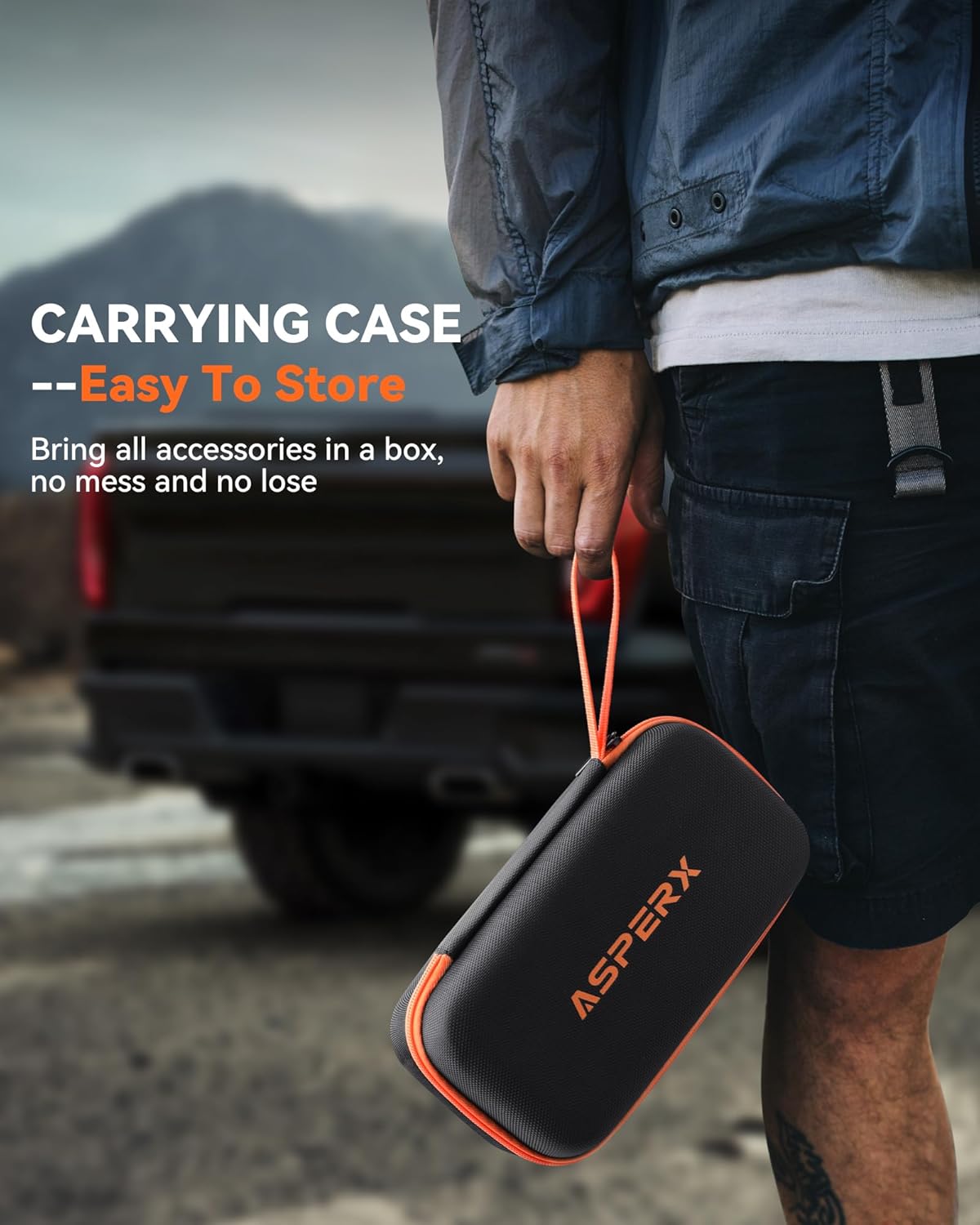 - 【With Carrying Case】The AsperX Carrying Case is made out of an extremely tough material, exhibiting outstanding cut and tear resistance. The soft inside makes sure that Your AsperX tire inflator is protected even on rougher roads. The AsperX Carrying Case has a mesh compartment pocket to store your tire inflator connectors, power kit and other accessories. Bidding farewell to the situation of messy, difficult to store, and easily lost accessories, bringing a more enjoyable user experience.