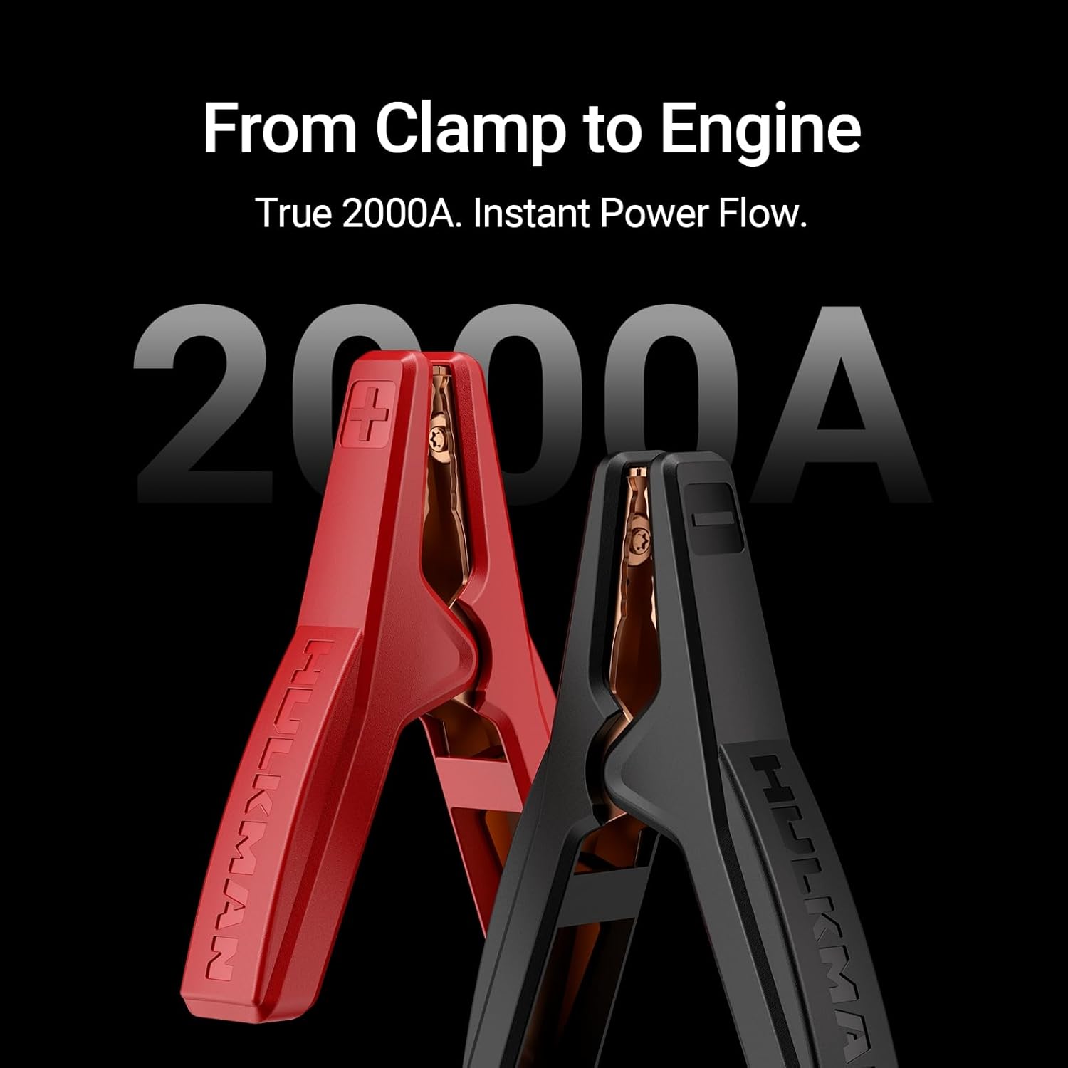 - [Start Dead Batteries] Delivers true 2000A peak current from the clamps—enough to jump start 8.5L Gas/6.0L Diesel engines. Up to 60 jump starts per charge.