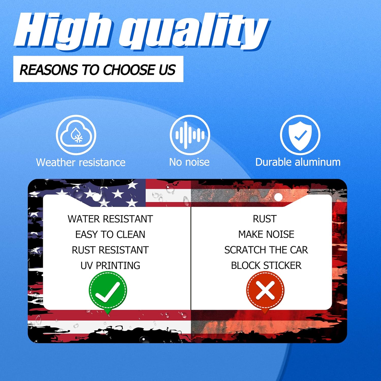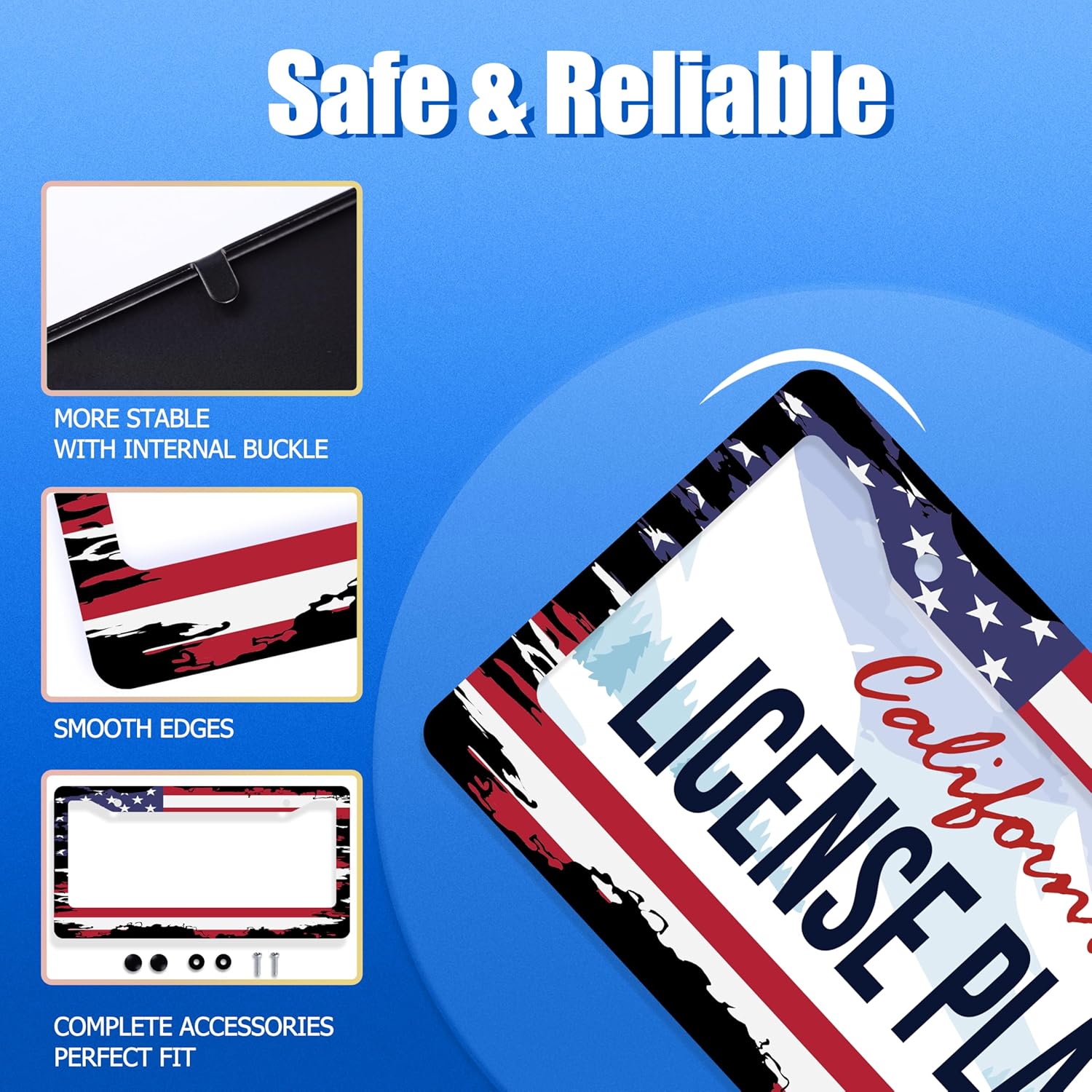 Vintage American Flag License Plate Frame USA Flag License Plate Stainless Steel Funny License Plate Holder Patriotic Car Accessories With Screws Car Decoration 12.3" x 6.3"Fits Standard Vehicles Size