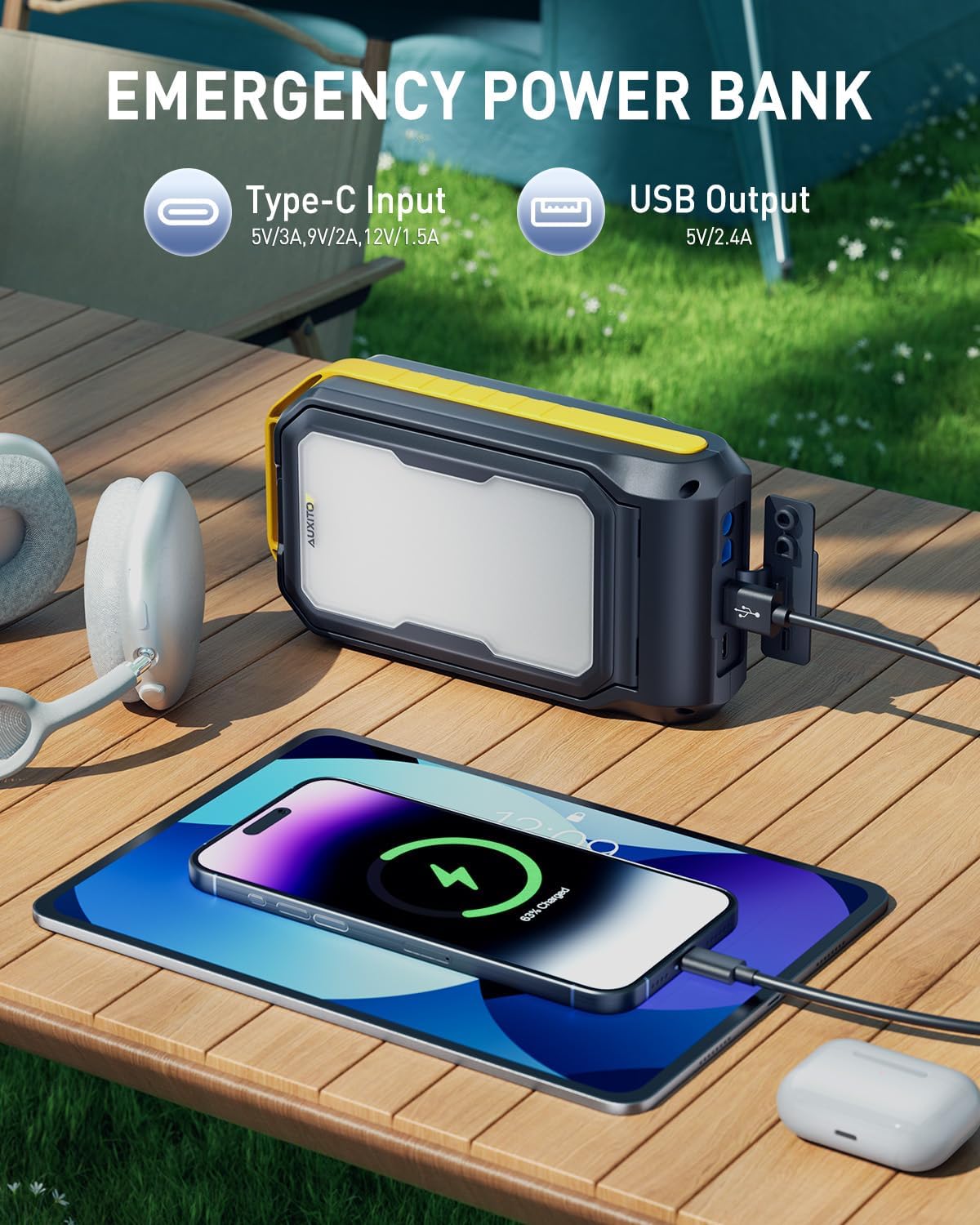 AUXITO Jump Starter: 6000A Car Portable-Battery Jumper Box with 4000LM LED Outdoor Camping Light and Power Bank Function, Up to 10.5L Gas and 10L Diesel Engines, USB Ports and Jumper Cable Included