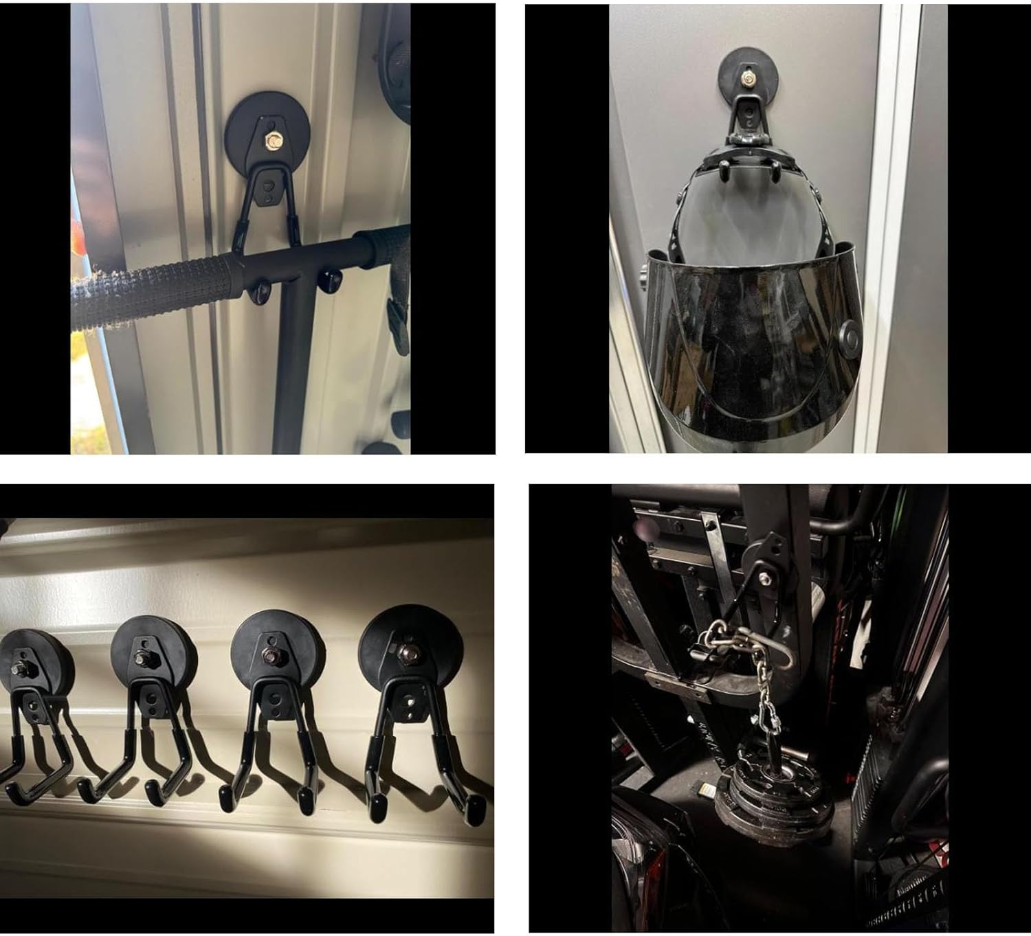 - π§²[Large Storage Magnetic Hooks]:These magnetic hooks includes 4 (2.6inch) strong magnet base with threaded bar, spacers,nuts and 4 PVC coated medium L hooks. We tested that our medium L magnetic hook can hold any kind of EV charger,more than one gallon bottled water, any kind of garage tool,drill, toolbox etc.