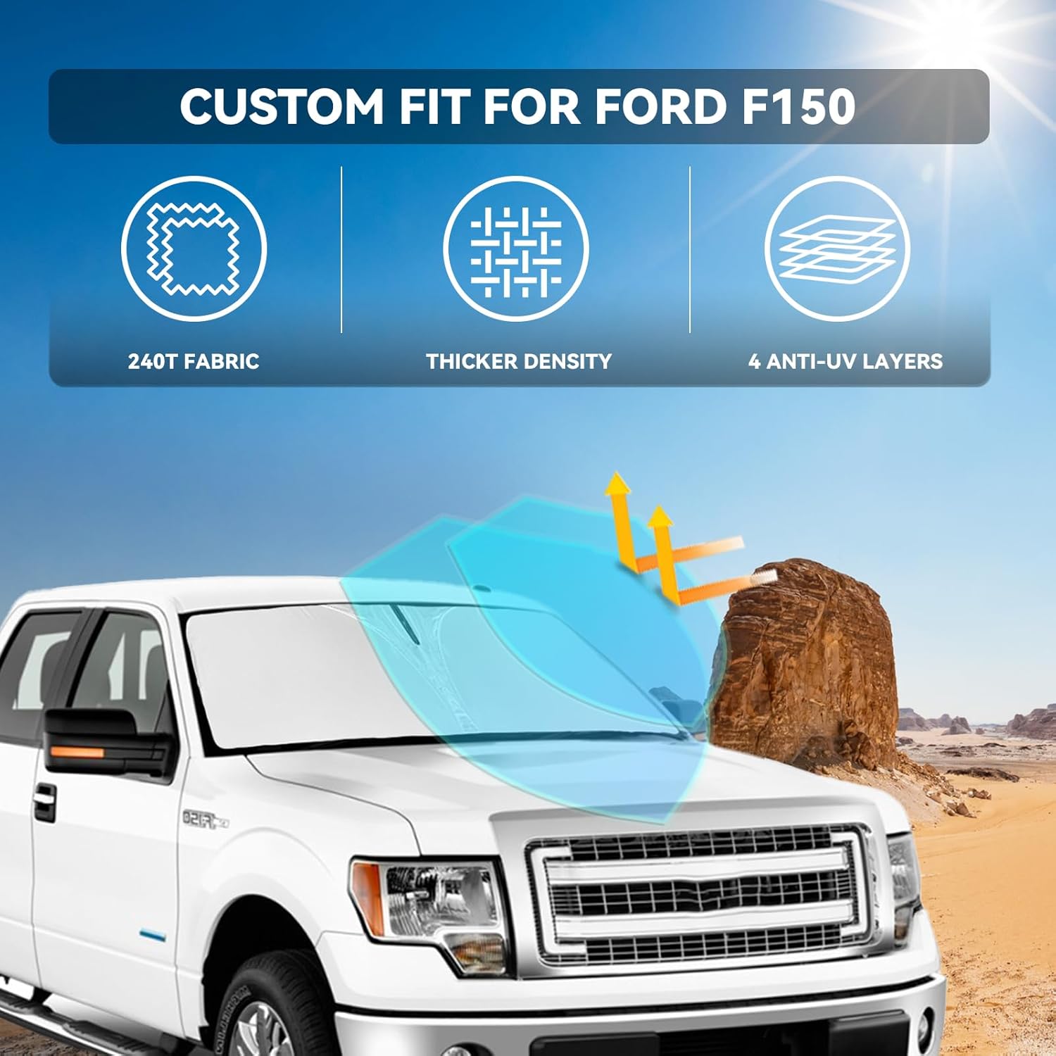for Ford f150 2012-2014 Windshield Sun Shade - 4 Layers Car Sunshades for Front Windows Shade Cover Custom Fit f150 Sun Visor 240T Retractable Shade Blocks UV Rays Car Accessories