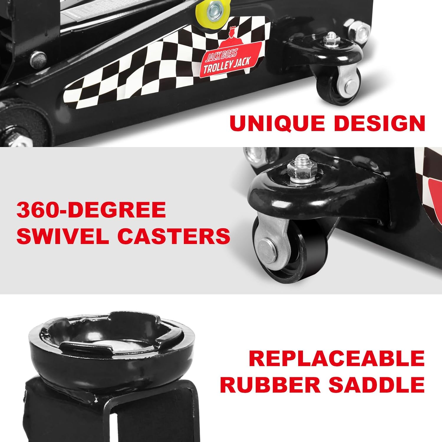 - Specifications: 1.5 ton (3,300 LBs) capacity with lifting range from 5.1" to 12.6". Contains 1 x floor jack, 1 x handle.