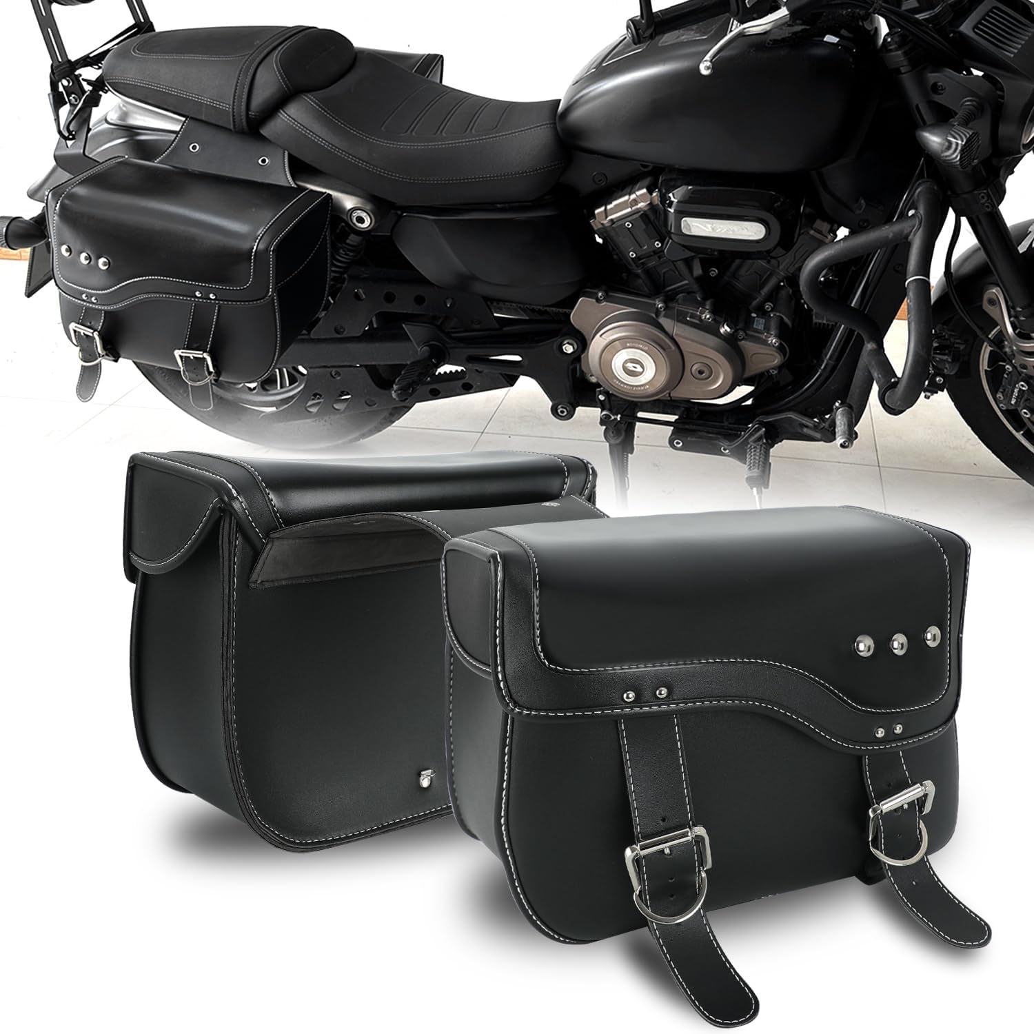 SUNPIE Motorcycle Saddlebags - Universal Leather Motorcycle Luggage Bag Waterproof Motorcycles Saddle bag with Large Capacity for Sportster Softail Shadow Dyna V-star