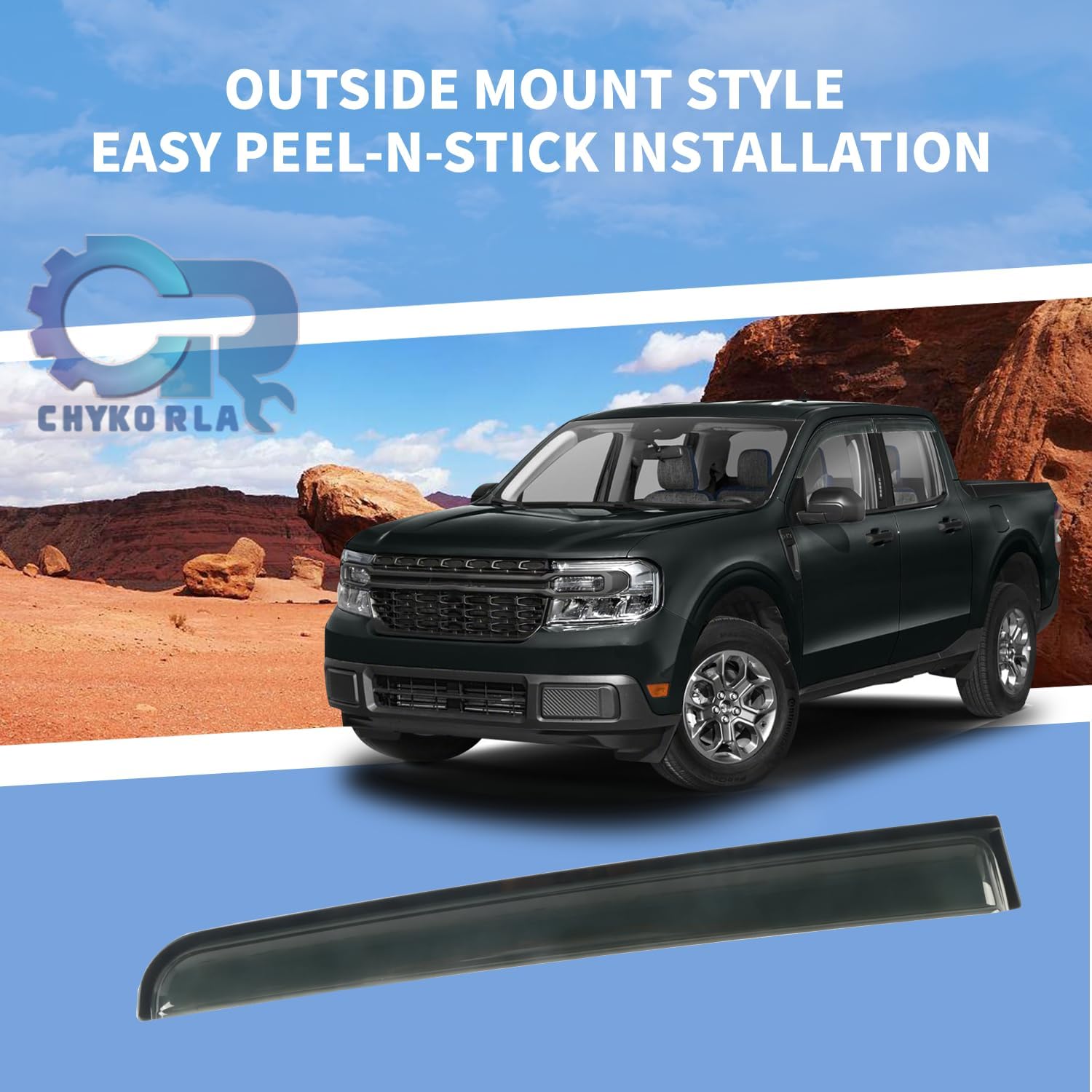 - Perfect Fit: CHYKORLA rain guards wind deflectors compatible with Ford Maverick XL XLT Lariat 2022 2023 2024 2025. 【ONLY for SuperCrew Cab 4 Full-Size Doors】. Please be advised that the visors are vehicle specific. Please check your vehicle's compatibility to ensure proper fitment