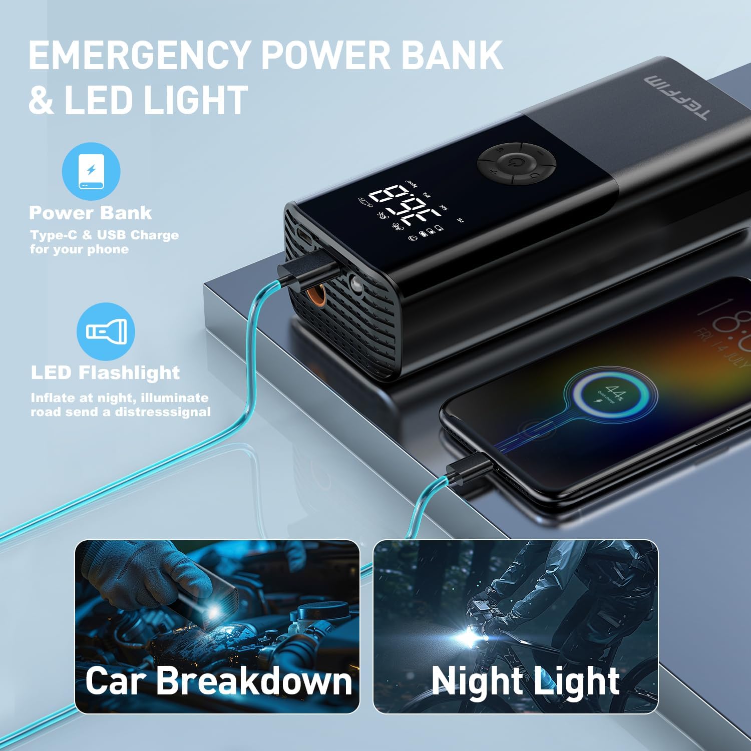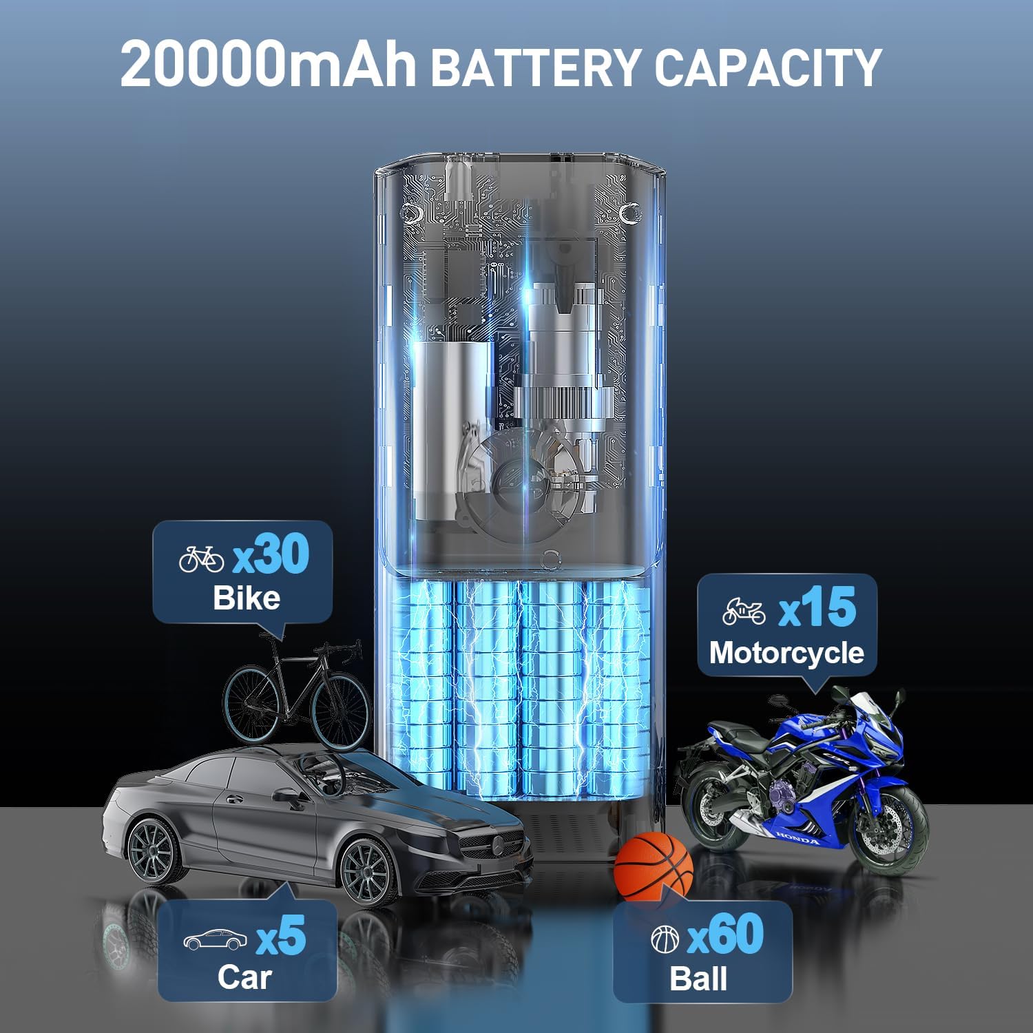 Tire Inflator Portable Air Compressor - 150PSI & 20000mAh Battery, 12V Smart Air Pump for Car Tires, 6X Tire Pump with Pressure Gauge, Auto Shut-off, Motorcycle, SUV, Bike Pump, Bicycle, Balls