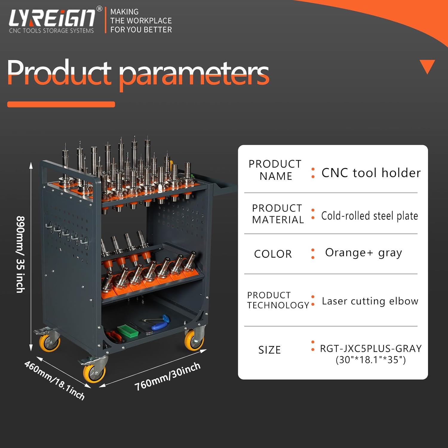 - HIGHER QUALITY: LYREIGN grey classic CNC tool cart adopts electrostatic spraying technology, and has been pickled and phosphated. The tool holder not only looks high-end and elegant, but is also rust-resistant and wear-resistant. The CNC tool cover is made of new material ABS, which has good cushioning and reduces the impact between the handle and the sleeve. The service life of the tool cart will be greatly improved.