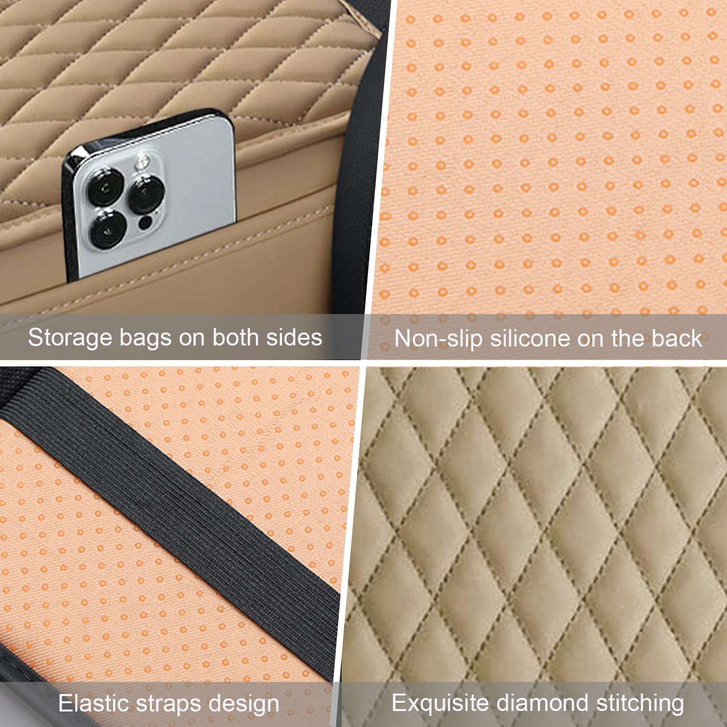 - Upgraded Side Storage Design: The center console cover adds two storage pockets, providing you with a additional storage space. You can store daily small items such as your phone, keys, wallet, lipstick, which is very convenient and practical, and also makes your car environment cleaner.