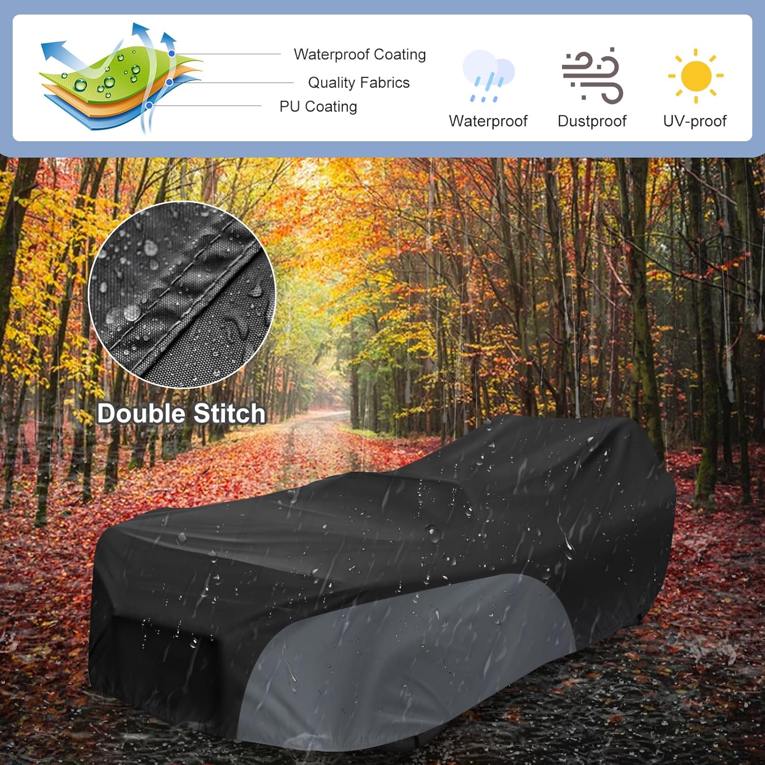 - Elastic Hem: The elastic hem at the bottom will stabilize your cover in your car