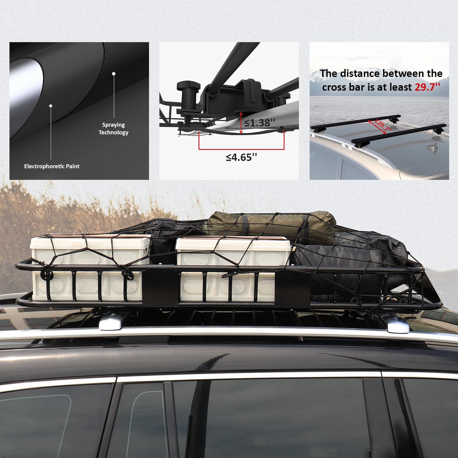 - Rust Prevention - The cargo basket adopts carbon steel, electrophoresis and spraying technology three anti-rust processes. Super layer protection makes the cargo carrier not easy to rust even in heavy rain or any other bad weather.