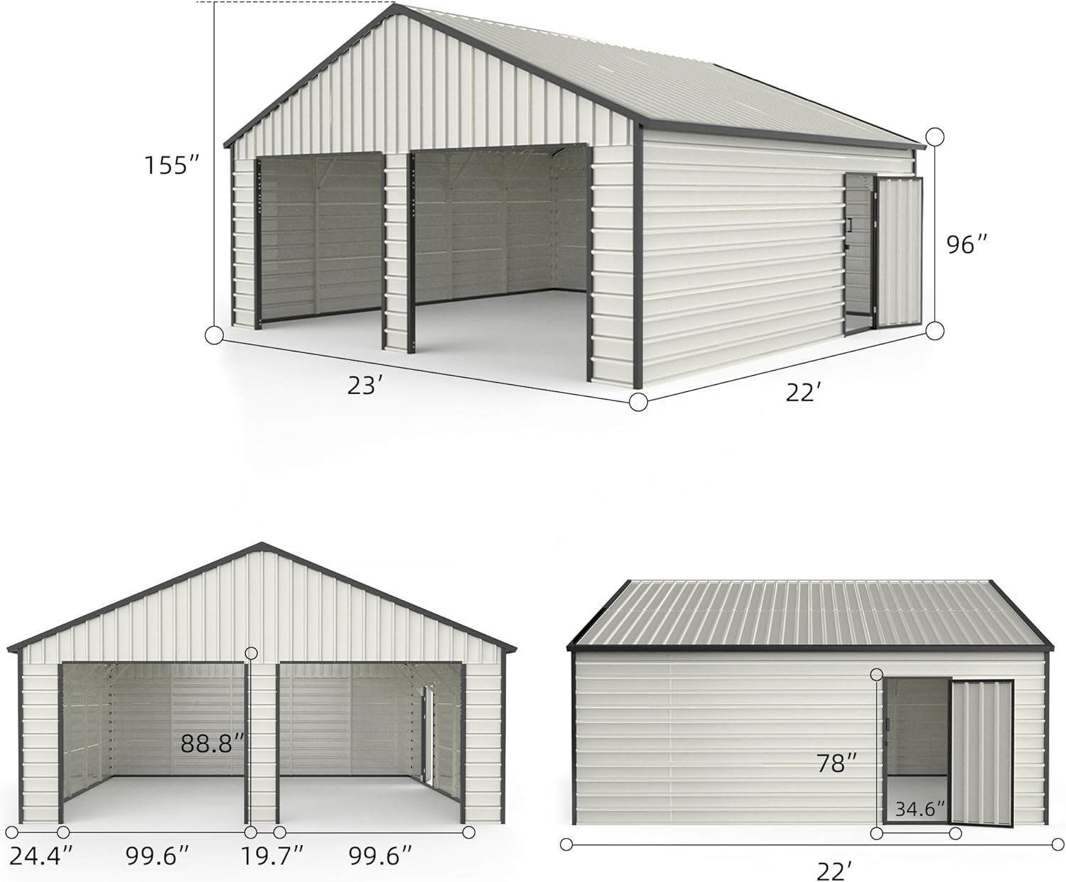 23 x 22 Metal Shed, Metal Garage Building with Side Entry Door, Prefab Double Garage Shed, Large Sheds & Outdoor Storage, Car Shed for Truck, Tool, Lawnmower, Cream