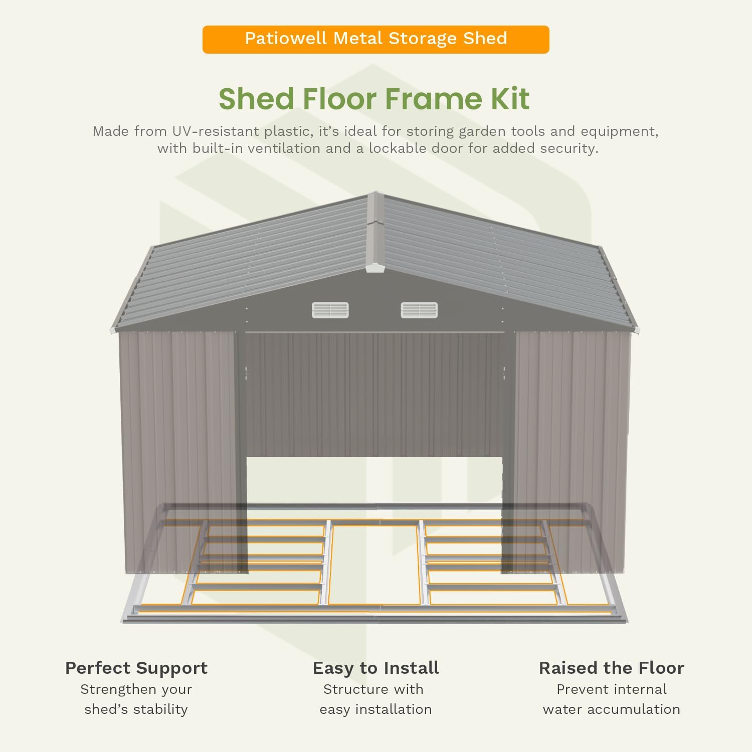 - Stable Floor Frame: The frame can increase the stability of the storage shed and isolate the flooring from the ground, preventing the flooring from being damaged by moisture.