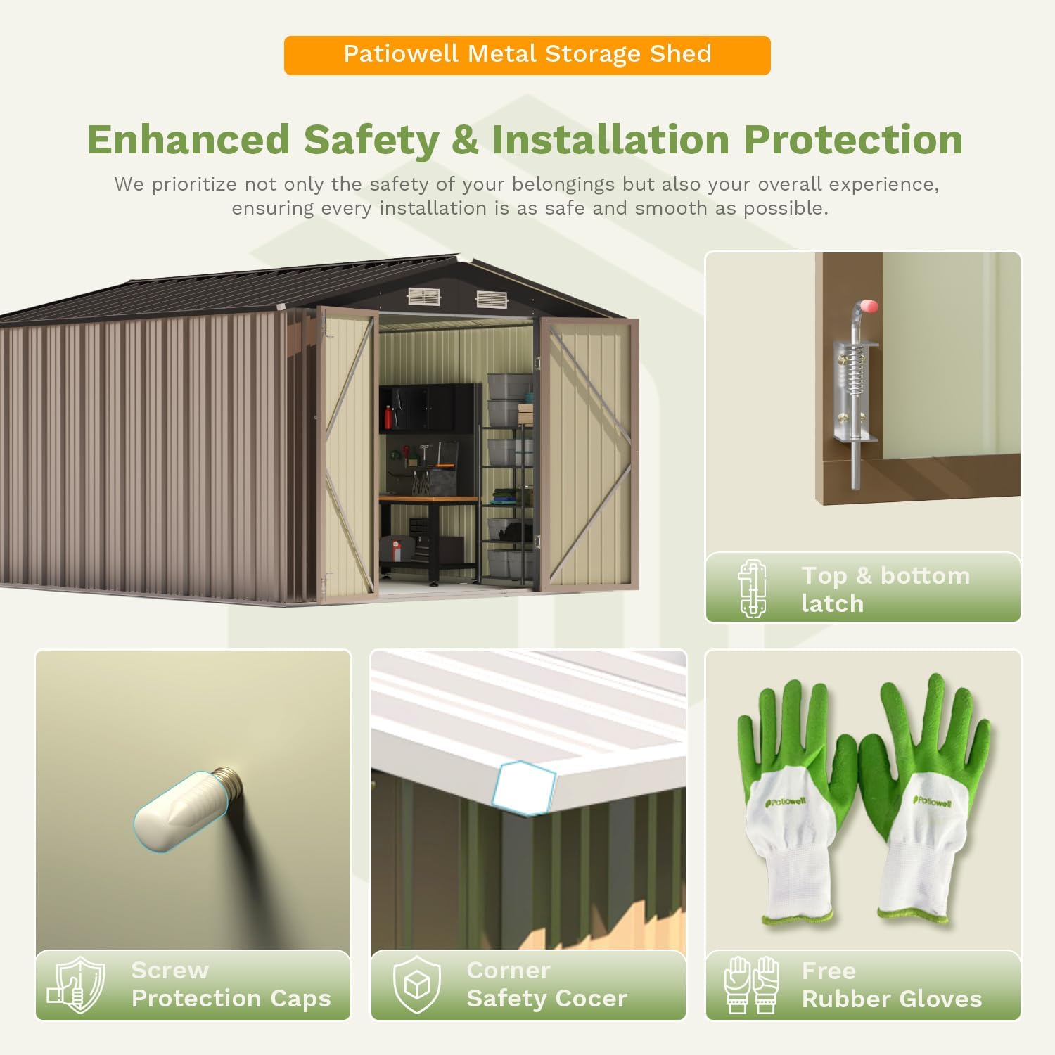 - Durable Metal Construction: Built with robust and thicker metal panels, this shed offers unparalleled strength and sturdiness, ensuring long-term reliability and protection for your belongings.