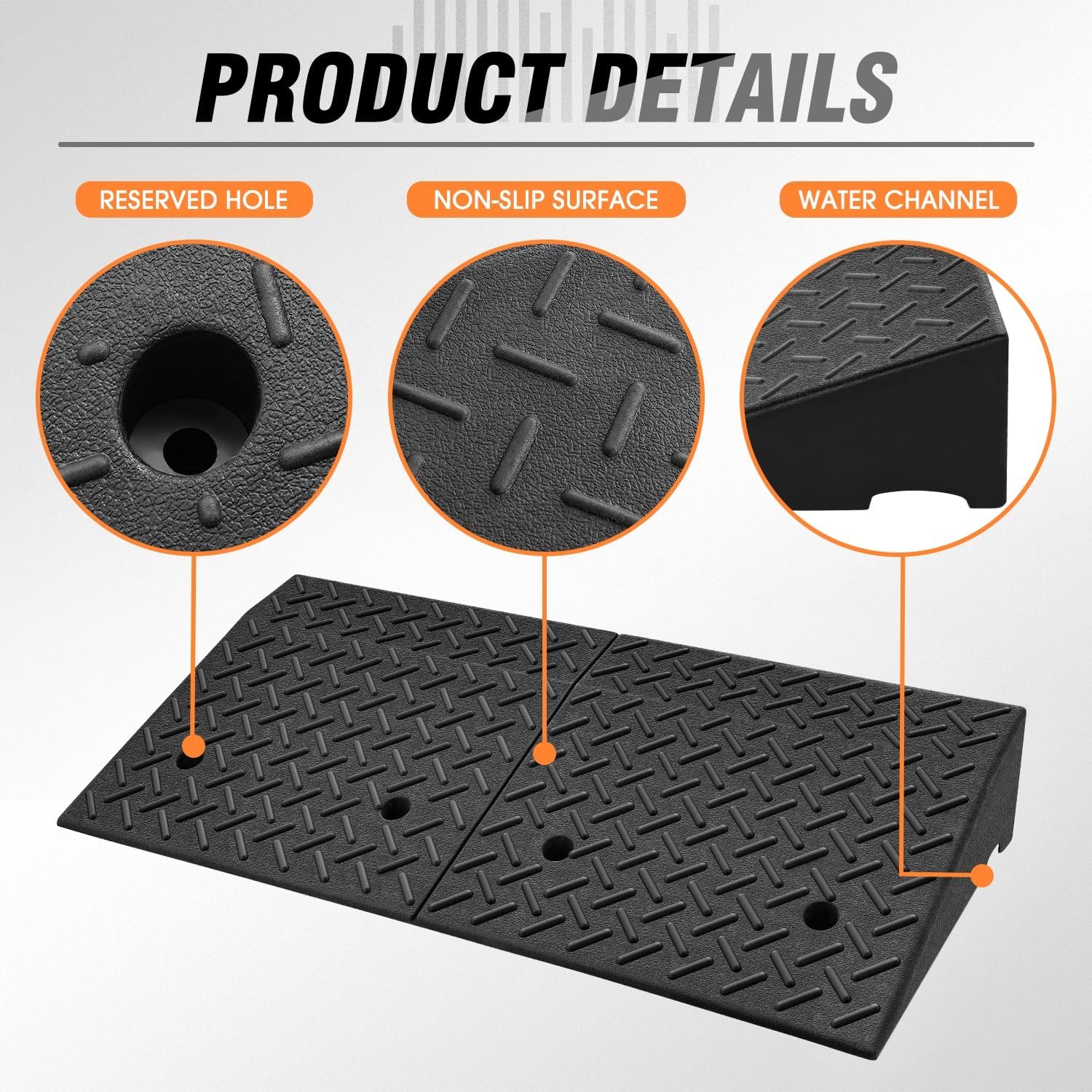 - EASY INSTALLATION - DNA Curb Ramp adopts an integrated design and Equipped with 1 x 2pre-drilled mounting holes that can be connected to the ground with screws
