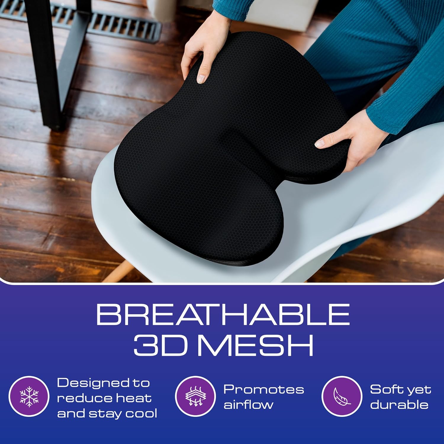 - BREATHABLE 3D MESH COVER FOR HEAT REDUCTION: Unlike traditional cushions, this seat cushion features a heat-reducing 3D mesh cover that allows air to flow, keeping you cool and comfortable. Whether used as a gaming pillow or a vital office desk accessory, it ensures you stay refreshed even during long hours of use.