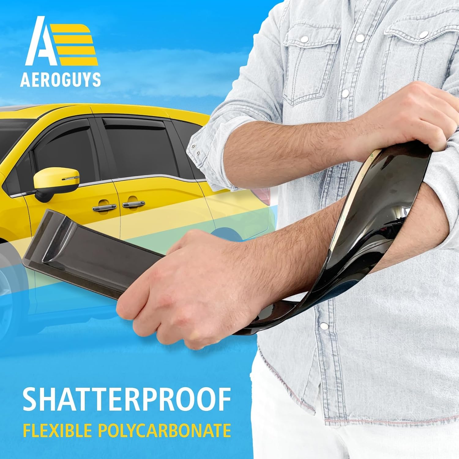 - Incredibly Durable AEROGUYS Auto Window Deflectors β They are made with strong and tough polycarbonate which is clear and scratch-resistant. They also provide UV protection making your ride more comfortable under all weather conditions.