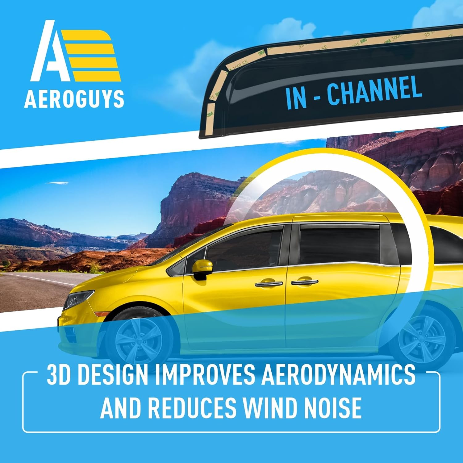 - No Tools Needed, Quick and Easy Assembly β These rain guards are very easy to fit. IN-CHANNEL INSTALLATION provides perfect fit for your car. Just slip it onto your carβs window and your job is done within minutes. There is no drilling or no tools required. Be sure that AEROGUYS window deflectors are water resistant, sun protective and will not bend, break or crack regardless of the weather conditions.