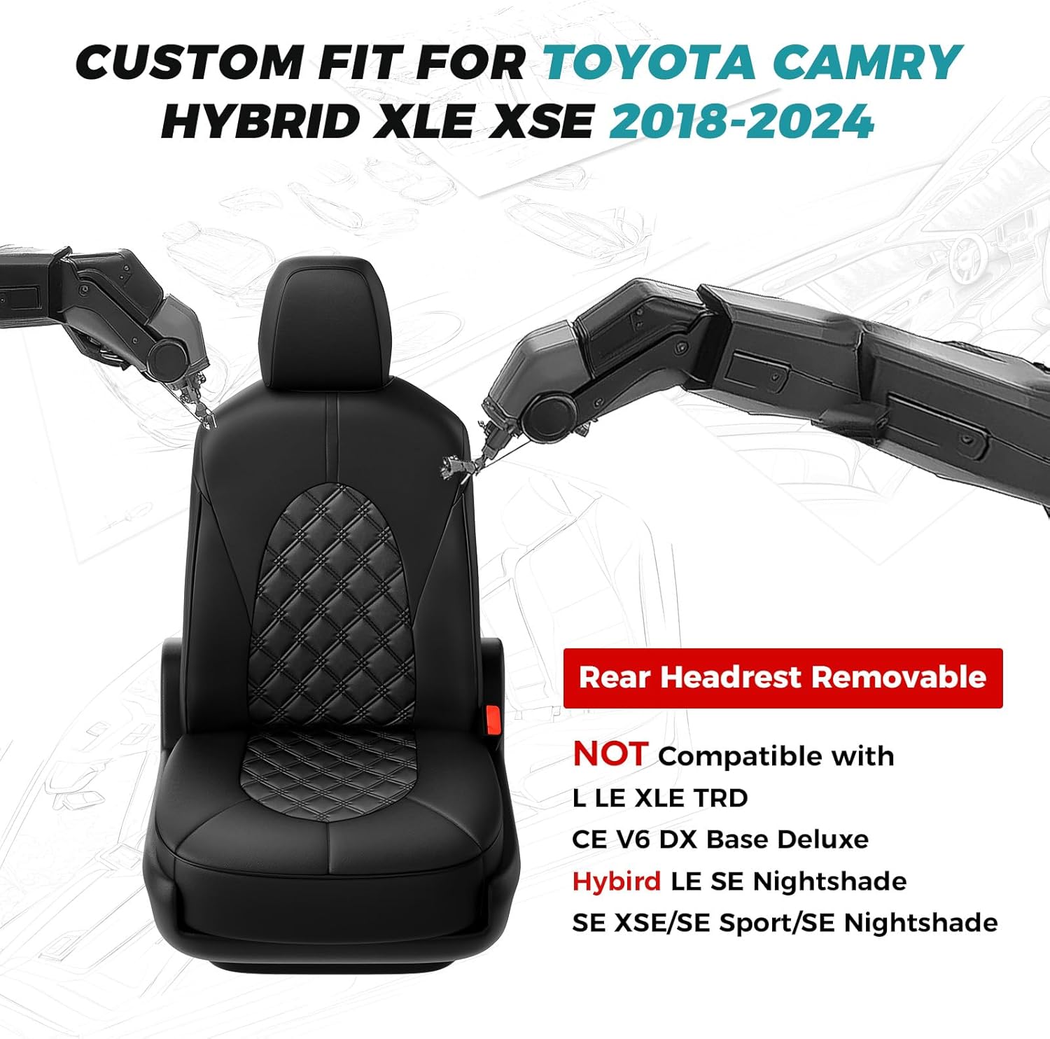 - ăCustom Car Seat Covers 1:1ă: Precisely cut and custom tailored to camry seat covers for a glove-like fit. Exclusively fit for Toyota Camry Seat Covers Hybrid XLE XSE 2018 2019 2020 2021 2022 2023 2024.