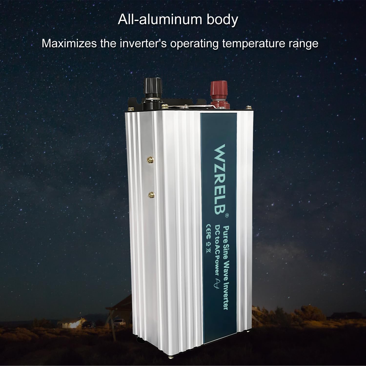 WZRELB 1200W Pure Sine Wave Inverter 24V DC to 110V 120V AC,Car Power Inverter with Dual AC Outlets, LED Display,Off-Grid Portable Power Converter for Home, RV, Truck, Camping