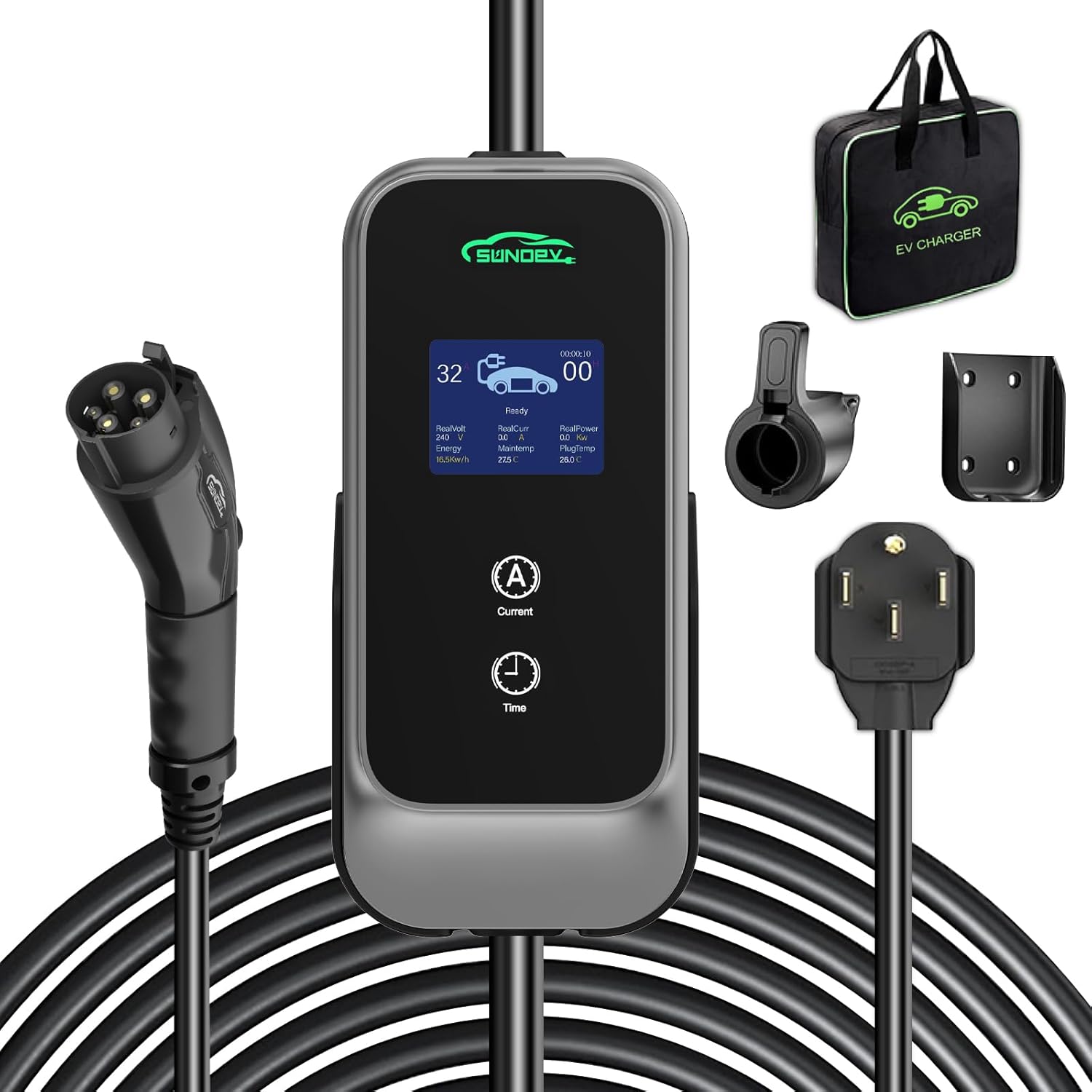 - 【Level 2 High-Speed Charging】This ev charger level 2 is equipped with NEMA 14-50 plugs, it connects to standard 240V outlets commonly used for dryers, RVs, or dedicated EV charging stations. No complex installation is required—simply plug in, customize your settings, and start level 2 charging! Maximum output of 32Amp, 240V, delivers up to 7.7kW for fast charging. Charges 3-6 times faster than standard Level 1 chargers. Use this level 2 EV charger to get 24 miles of range in just 1 hour.