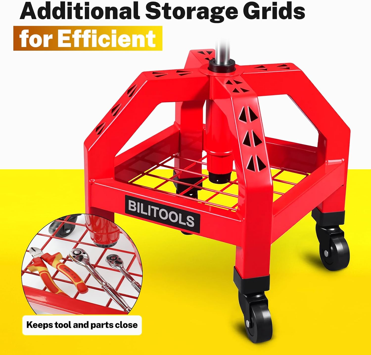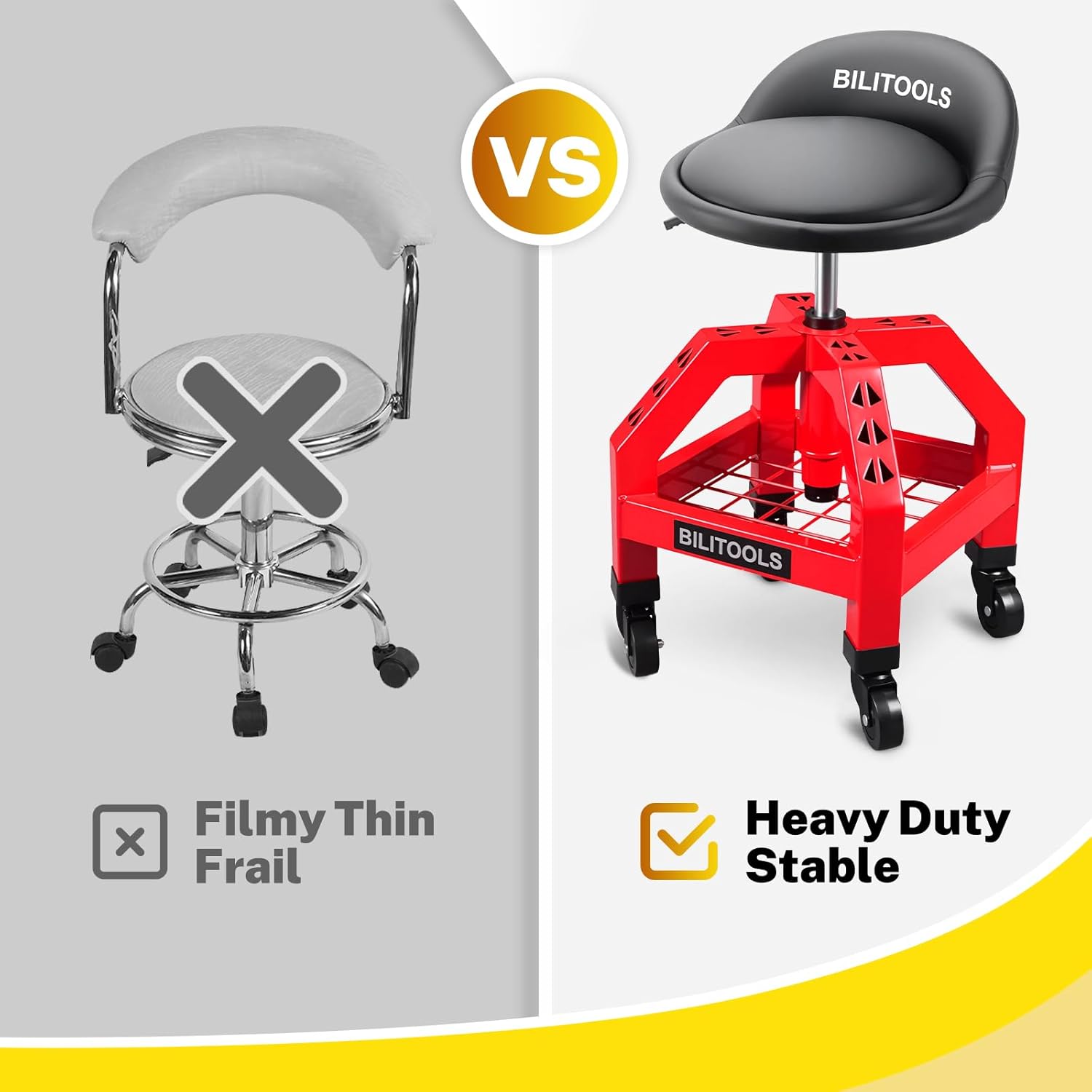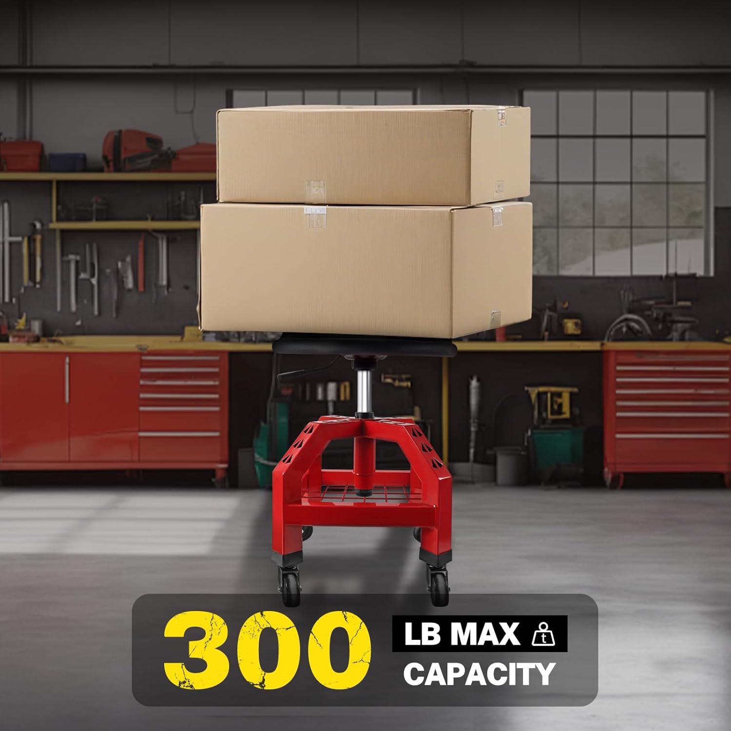 - Heavy-Duty Garage Stool for Mechanics:Crafted with a corrosion-resistant, heavy-duty steel frame, this rolling garage stool supports up to 300 lbs. The robust construction makes it ideal for professional mechanics and anyone needing a reliable shop stool.