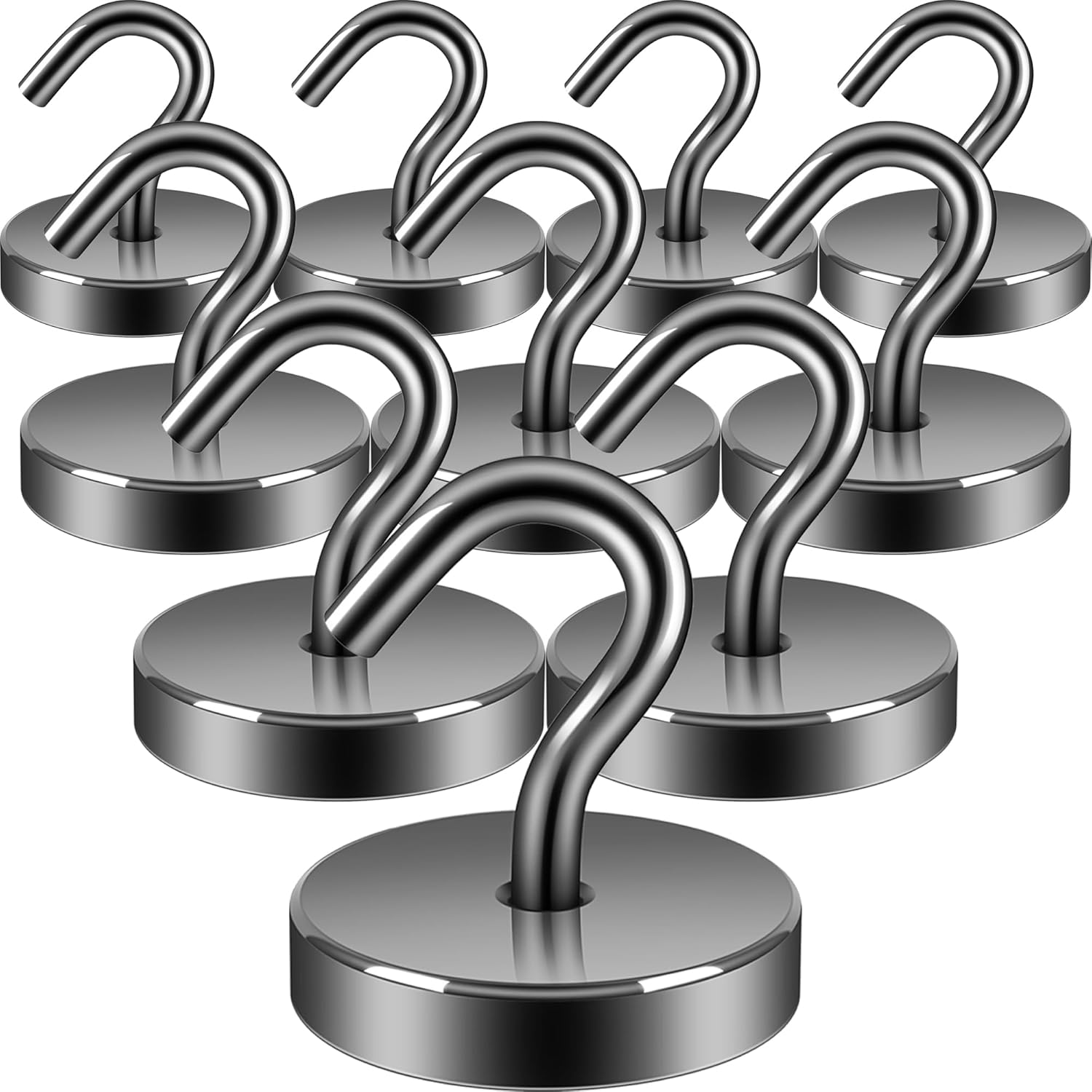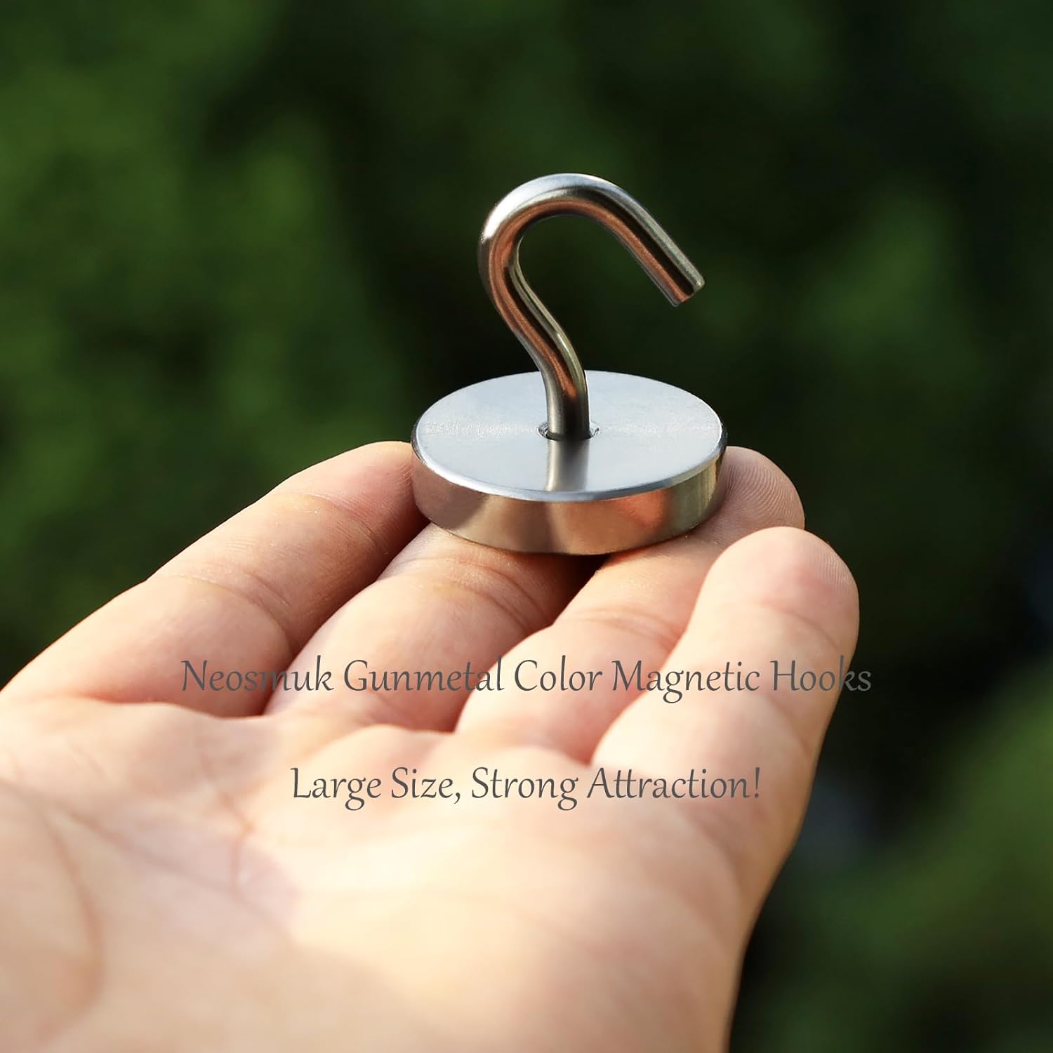 Neosmuk Magnetic Hooks, Cruise Ship Essentials, 120lb+ Heavy Duty Magnetic Hooks for Cruise Cabins, Refrigerator, Grill, Hanging, and Travel | Extra Strong Must-Haves Magnet Hook,Gunmetal,Pack of 10
