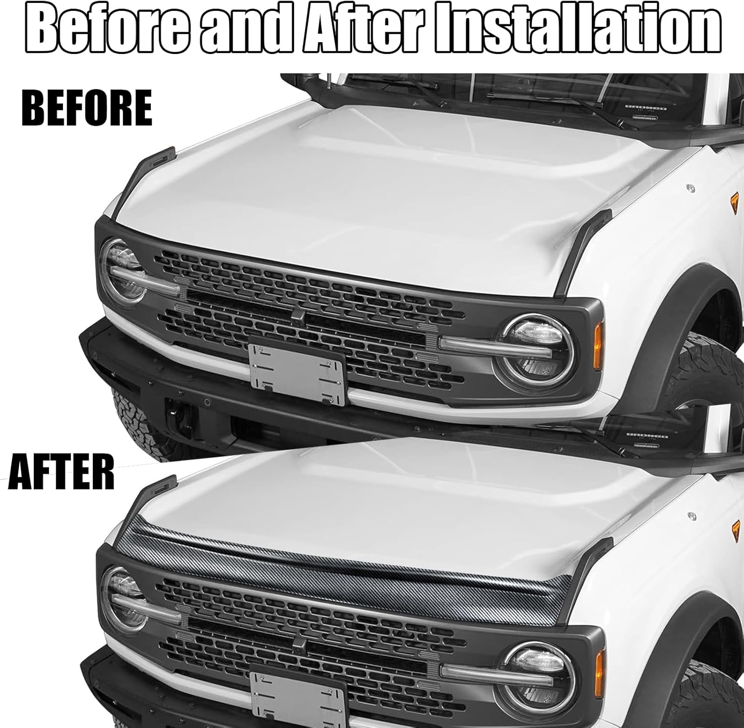 Hood Deflector Hood Protector Compatible with Ford Bronco 2/4 2024 2023 2022 2021 Gloss Carbon Fiber Hood Protector Bug Deflector Stone Guard(Not for Bronco Sports)