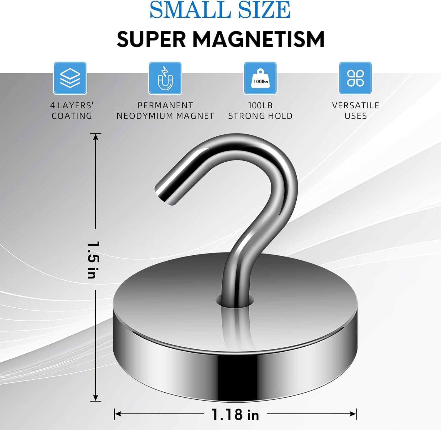 - ✔ VERSATILE USE- Neosmuk’s strong neodymium magnetic hooks were endowed with a strong capability for holding various items wherever there is iron or steel. This magnet hook is a perfect magnetic key holder. You can also hang your tools next to the toolbox with this magnetic hook. Our magnetic hooks are great for grill, pot, cup, utensils, and oven.