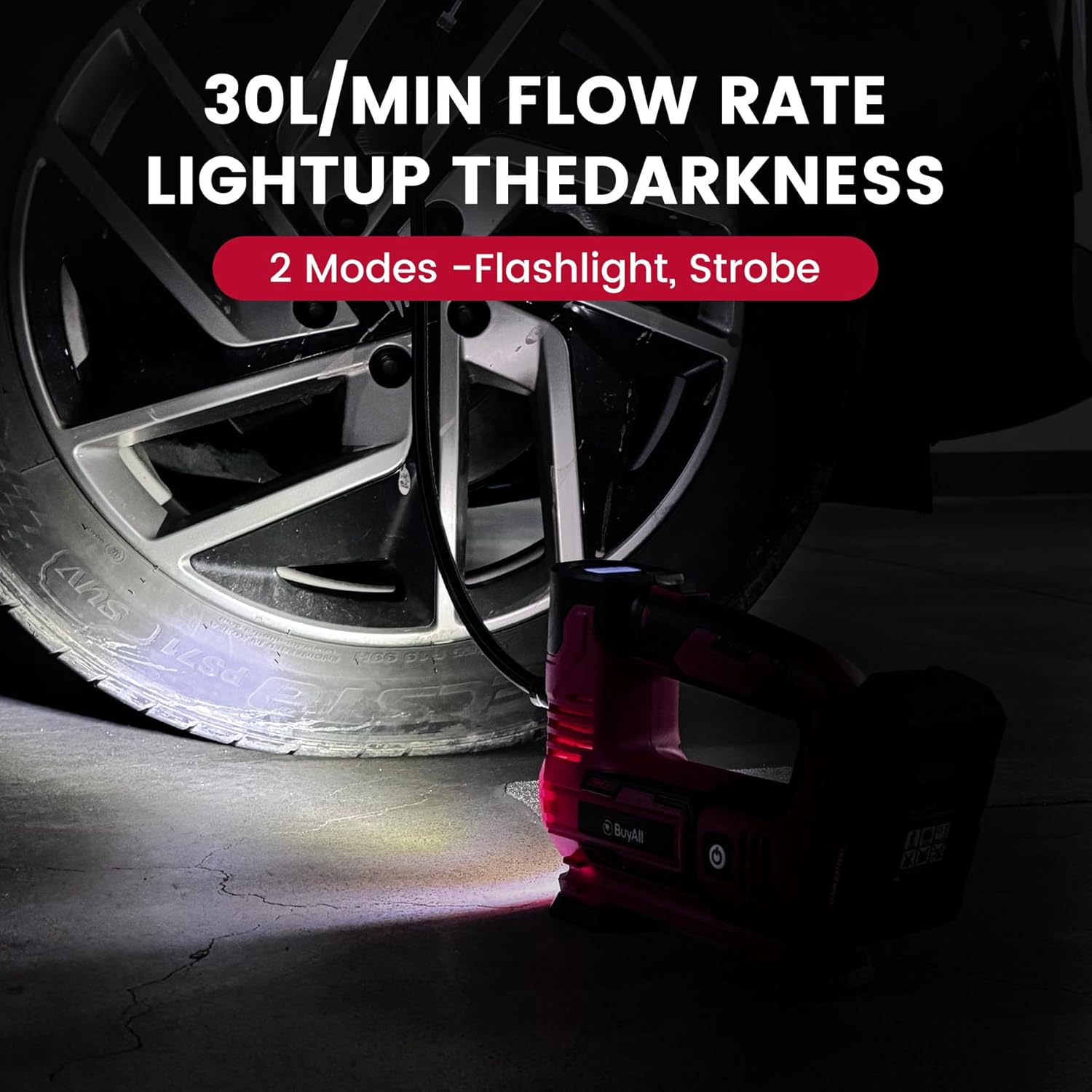 - Auto Shut-Off Feature: Automatically stops when the desired tire pressure is reached, preventing over-inflation and saving battery life.
