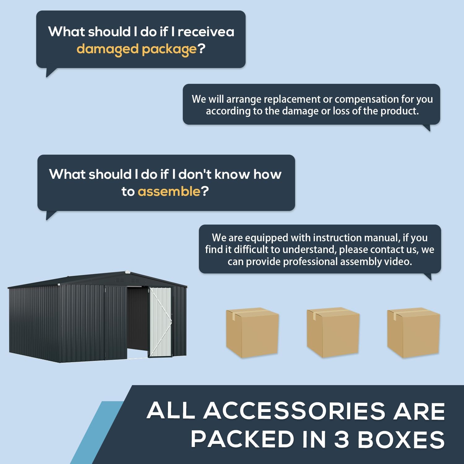 U-MAX Shed 10x10 Outdoor Storage - Large Metal Garden Sheds, Lockable for Backyard & Patio Use in Dark Grey
