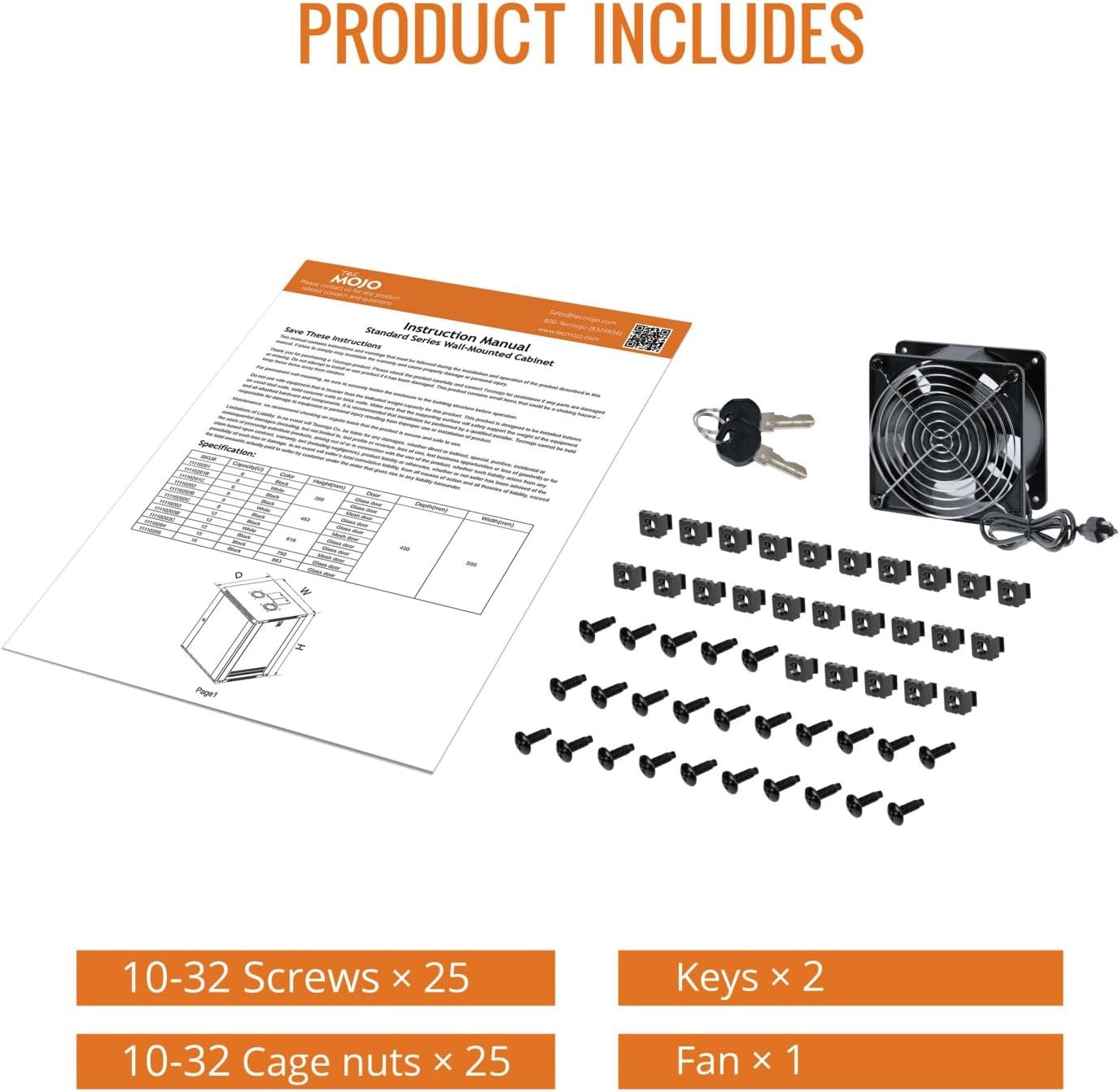 - Ventilation and Security: One-built-in top fan(with power cable) and flow through mesh doors to prevent overheating of the network rack