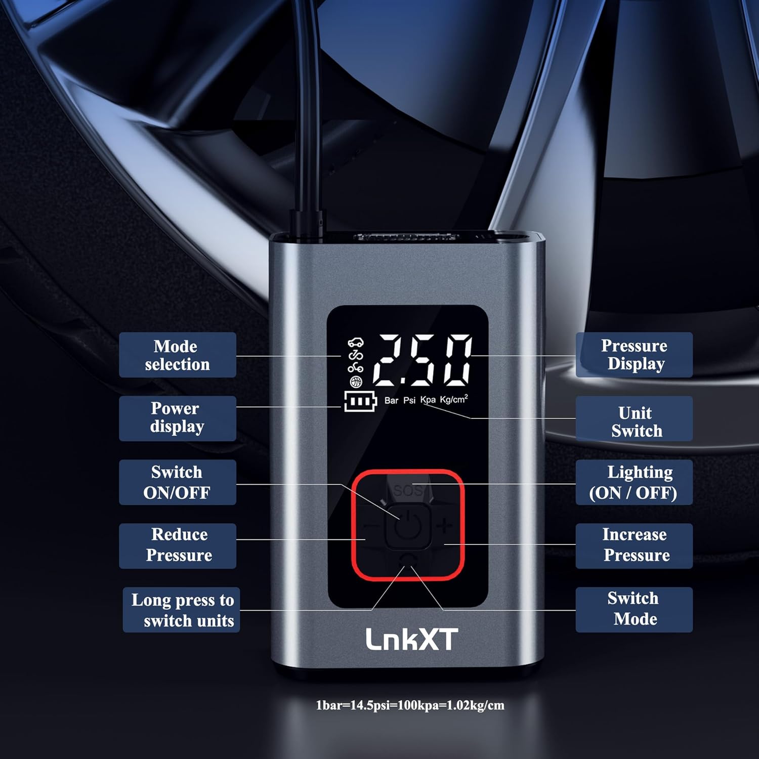 - 4 Convenient Operating Modes – Designed with versatility and simplicity in mind, this portable tire inflator offers four distinct operating modes: one for car tires, one for bikes and motorcycles, one for inflating balls, and one for other inflatable items. Each mode is pre-set with optimal pressure settings, making it easy to switch between tasks without manual adjustments. Whether you’re at home, on the road, or at the park, this pump is ready for the job.