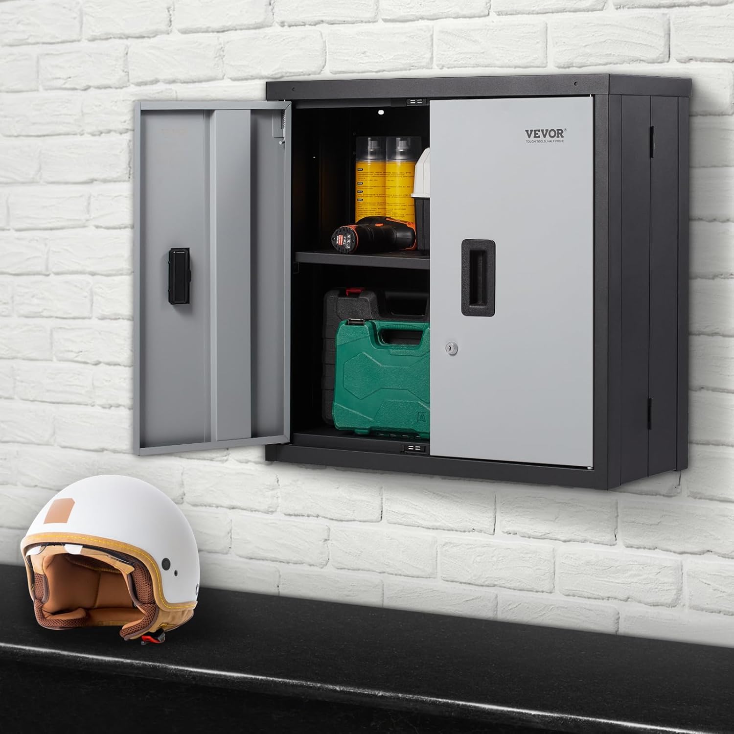 - Foldable Wall Cabinet: VEVOR wall cabinet is crafted for garage tool storage organization, it can be folded into 3.5 inches in width and expandable into 12 inches wide for storage. This wall mounted cabinet is very easy for installation and built upon quality material, itβs made of 0.6mm thickened steel board with powder-coated surface that work against scratches and corrosion.