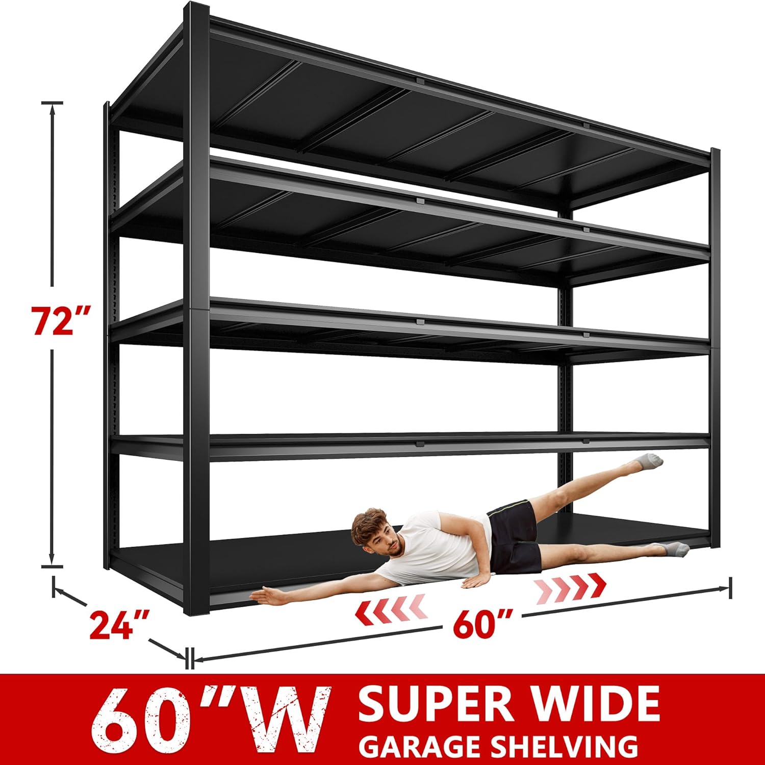 - Special Feature : 24"D x 60"W x 72"H W Heavy Duty Shelving, Storage Shelves for GarageMetal Shelving, 3000 LBS Heavy Duty Storage Shelves, Metal Shelves For Storage, Durable garage storage shelving, wide storage shelves, Metal Shelving, 5 Tier Shelving Unit, Metal Shelves for Storage 24"D x 60"W x 72"H W Heavy Duty Shelving, Storage Shelves for GarageMetal Shelving, 3000 LBS Heavy Duty Storage Shelves, Metal Shelves For Storage, Durable garage storag… See more