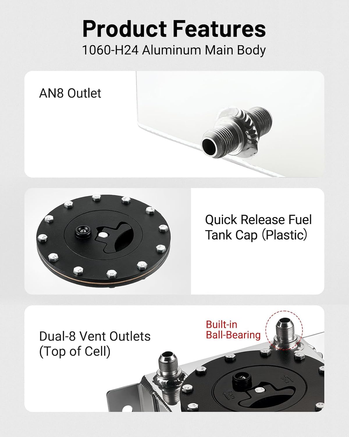 - Features: 1PC aluminum fuel cell includes anti-slosh foam,without level sensor,Built-in Ball-Bearing