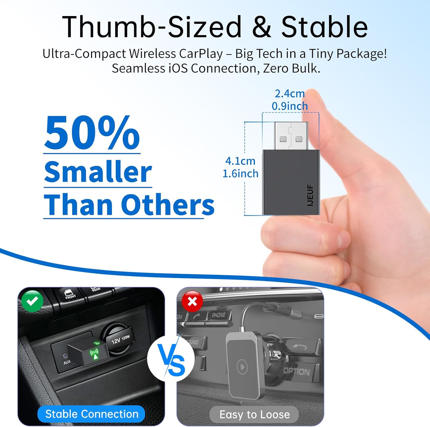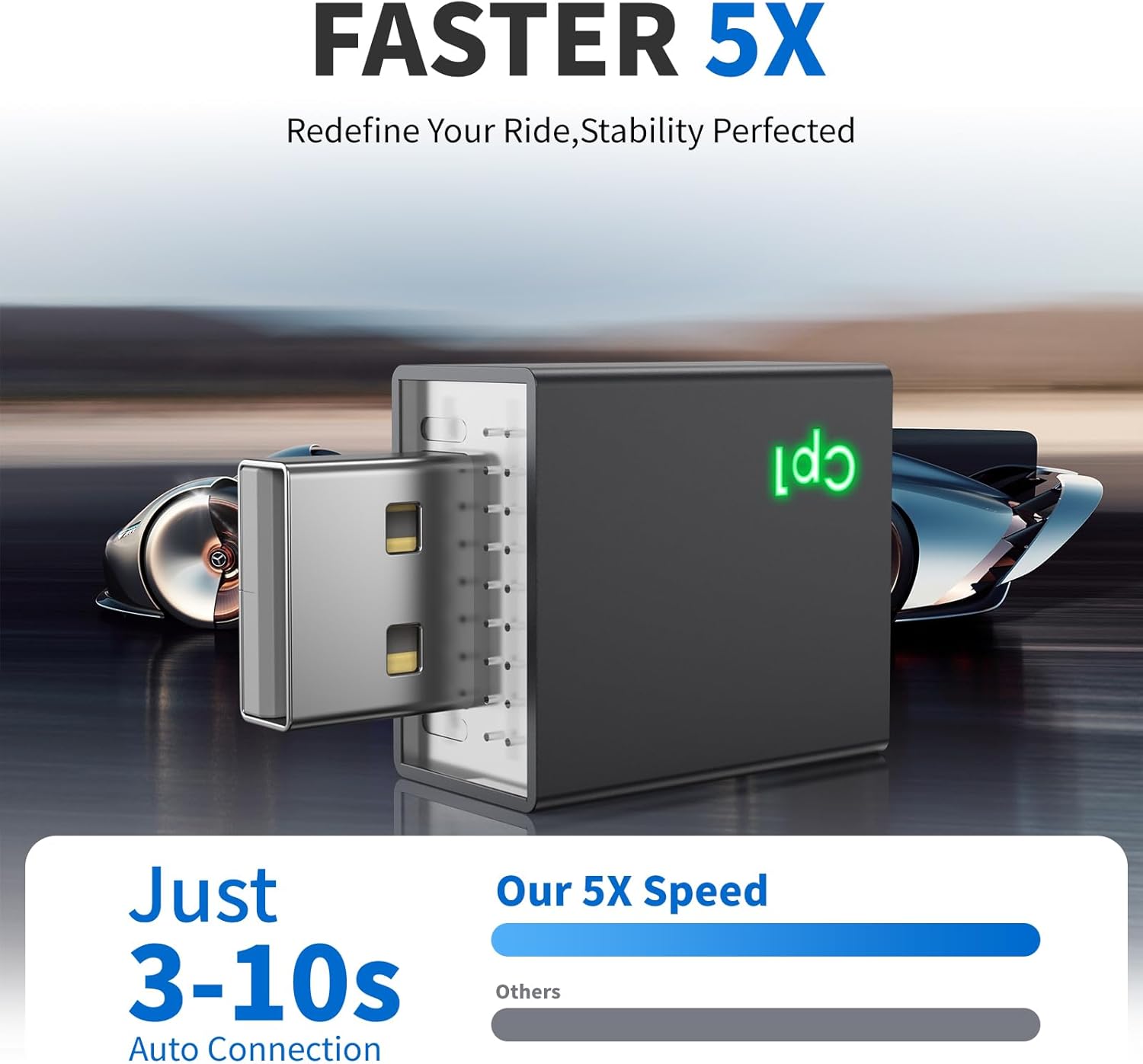 - đź”— Stable & Ultra-Low Lag Connection:Unlike other apple carplay wireless adapter that suffer from disconnections or lag, our advanced 5.8GHz WiFi and Bluetooth 5.X ensure ultra-fast response times. Less than 1 second delay for music, navigation or calls, which even on bumpy roads, the connection stays rock-solid, keeping your drive smooth.