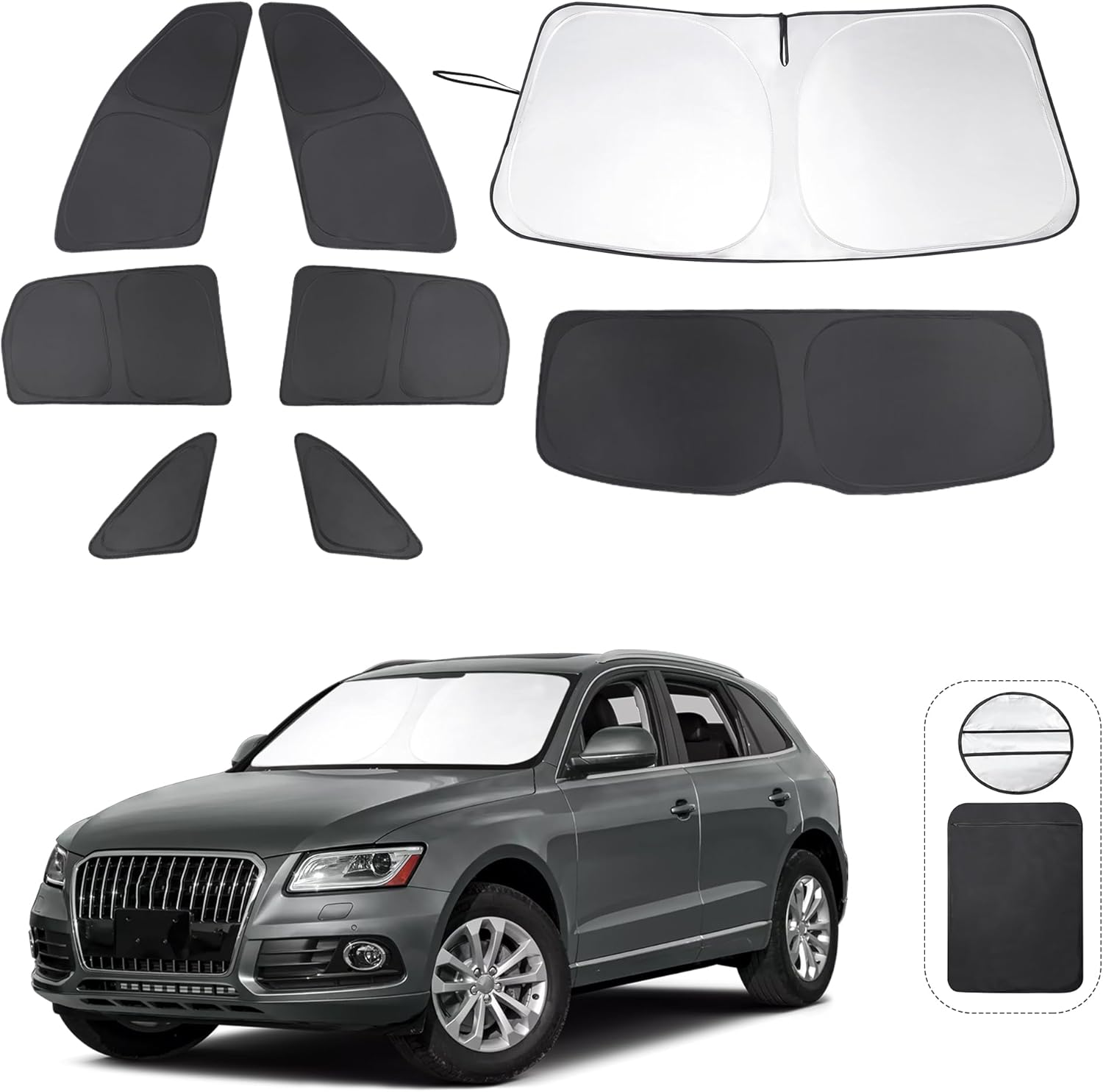 - Customized Design:The sun shade custom fit for Audi Q5/2014-2017 Audi SQ5 2009-2017.Our window shade is according to the car size design,perfectly fit your car and does not need to trim.windshield sun shade solve the problem of light leakage and incompatibility of the old umbrellas.The sunshade designed for Audi Q5/2014-2017 Audi SQ5 2009-2017.