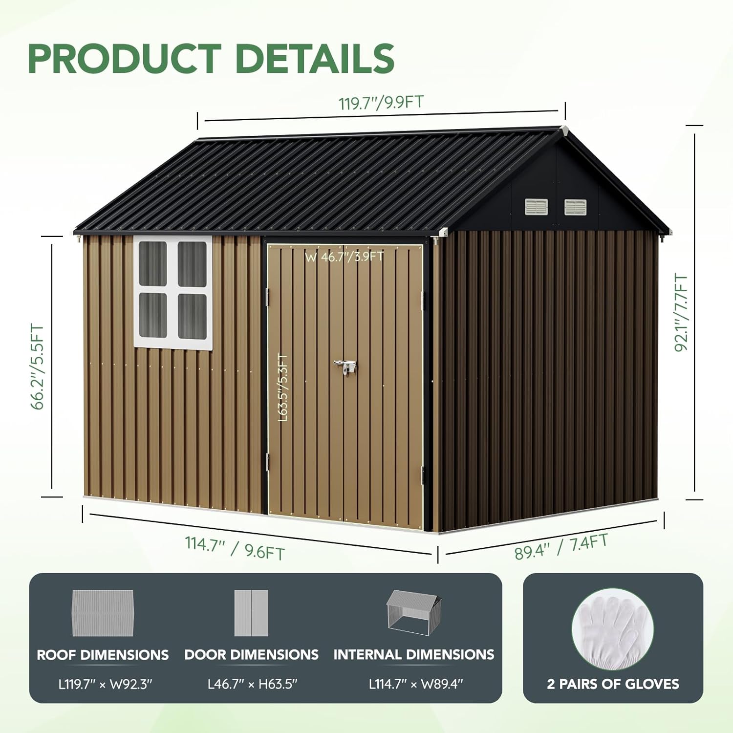 10X8FT Outdoor Steel Storage Shed with Lockable Doors, One Big Window,Ideal for Garden, Backyard, Patio Storage,Brown
